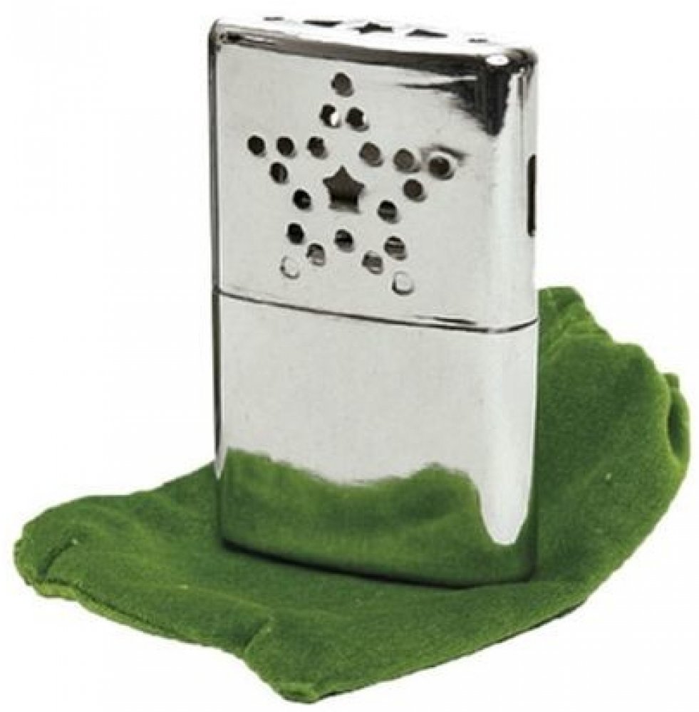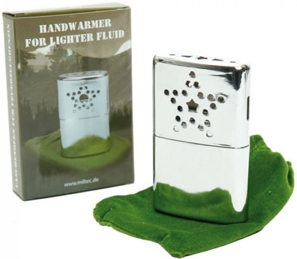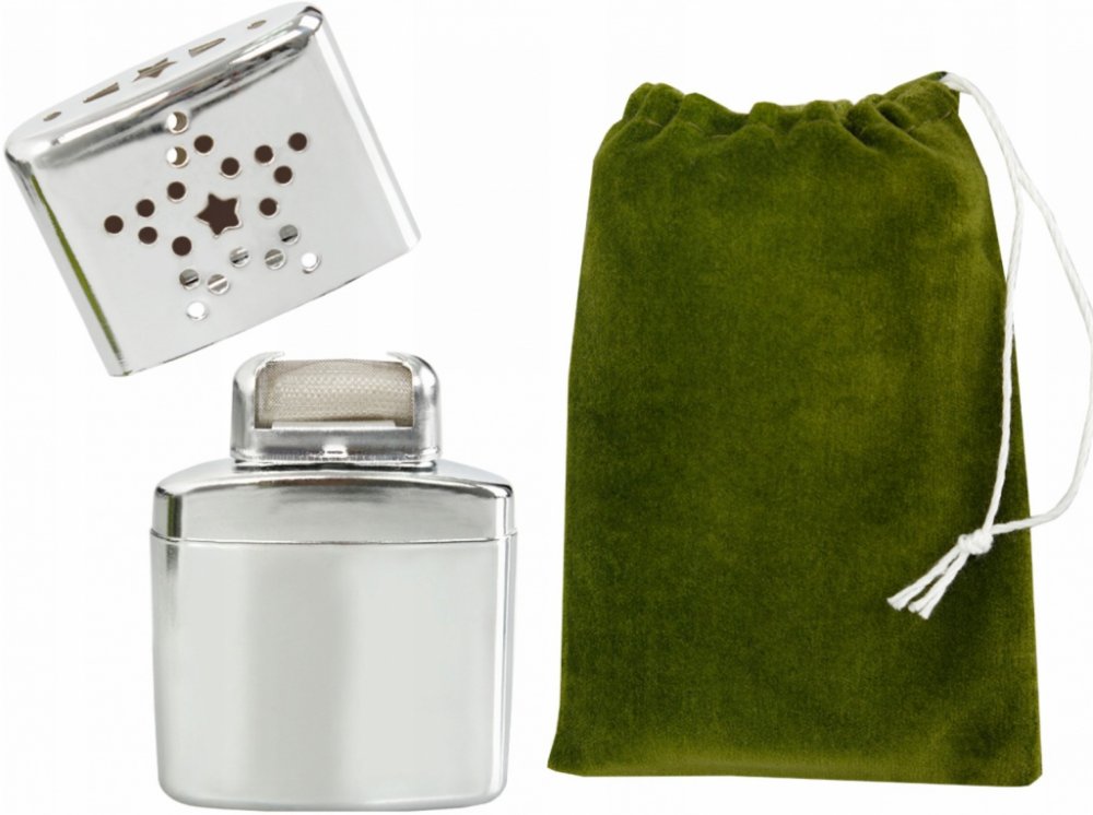 Benzínový kapesní ohříváček, pracuje na principu spalování výparů benzínu. Uložen v bavlněném pytlíku, který je možné vložit do kapes.