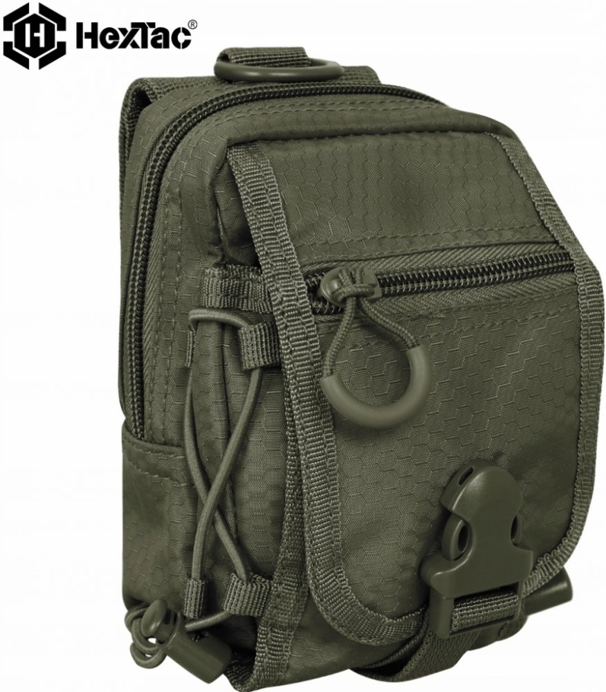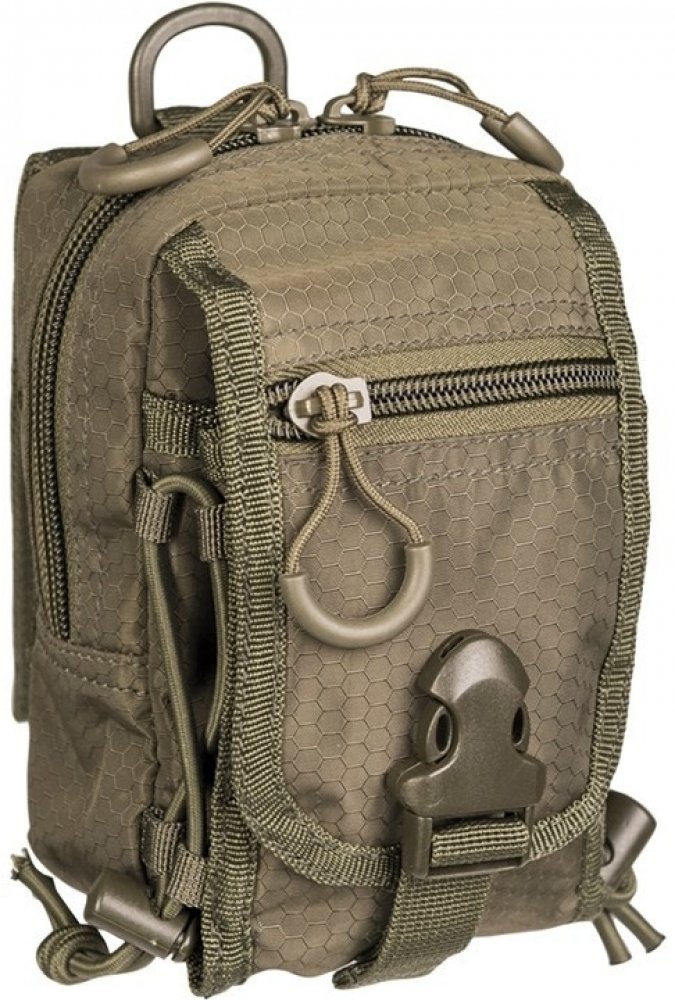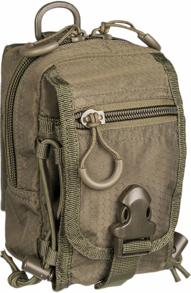 Taška na pásek se šestiúhelníkovým vzorem Mil-Tec Hextacy v olivové barvě z polyesteru s PVC potahem a výplní z pěny EVA. Kompatibilní se systémem MOLLE, lze ji upevnit kamkoli.
