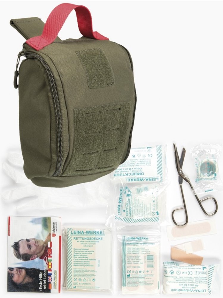 Lékárnička IFAK s možností rychlého rozepnutí od německé značky Mil-Tec.Lékárnička je dostatečně prostorná na nošení všech důležitých zdravotnických zásob jako jsou obvazy, gázy, náplasti atd.Obsahuje: nůžky náplast 5 x 2,5 cm sterilní látku 40 x 60 cm 2x pár rukavic první pomoci 4x adhezivní obvaz 10 x 6 cm trojúhelníkový obvaz 136 x 96 x 96 cm nouzová fólie 160 x 210 cm 10x náplast různé velikos...