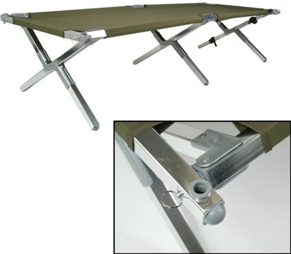 Skládací lehátko vyrobeno dle americké armádní předlohy, potah 100% nylon, rám dural profil 32 x 32 mm s tloušťkou stěny 1,2 mm, PVC koncovky.