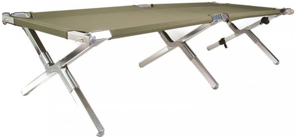 Skládací polní lehátko US typu se zvýšenou nosností. Dodáváno včetně přepravní tašky.