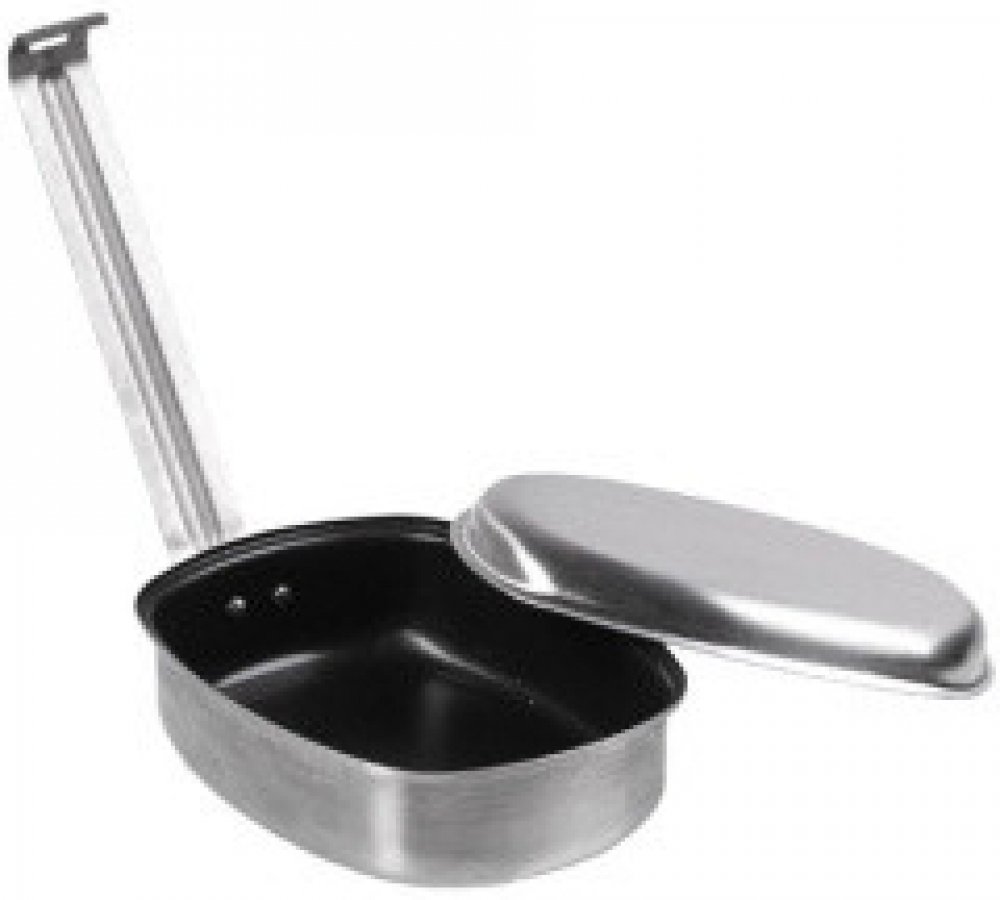 Dvoudílný francouzský ešus od Mil-Tec Kvalitní ešus francouzského stylu, který je vybaven o teflonovou vrstvu pomáhající proti připálení. Máte často na vašich toulkách chuť na trochu smažených vajíček na cibulce? Německý specialista na outdoor a taktické vybavení Mil-Tec nám přináší lehké, skladné a snadno čistitelné řešení - tuto francouzskou pánev v ešusovém stylu. Tento nerezový francouzský ešus od Mil-Tec je vyroben z odolné nerezové oceli. Skládá se ze dvou dílů - pánev se sklopnou rukojetí a víko - kdy obě části se dají snadno složit do jednoho kompaktního balení o rozměrech 19,5 x 14,5 x 7 cm a celkové hmotnosti 500 gramů. Pánev je pak vybavena o protipřilnavý teflonový povrch, který vám v případě nepozornosti může zachránit váš drahocenný pokrm. Celá tato sada je extrémně jednoduchá na čištění, velmi skladná a praktická. Podle slov samotného výrobce se Mil-Tec inspiroval designem nádobí používaného francouzskou armádou. O praktičnosti této sady tedy nemohou bát žádné pochyby. Vlastnosti sady nerezového francouzského ešusu od Mil-Tec: skladná, lehká a praktická sada 2 díly nepřilnavá pánev se skládací rukojetí víko materiál: nerezová ocel povrch pánve: teflon (PTFE) rozměry: 19,5 x 14,5 x 7 cm hmotnost: 500 g