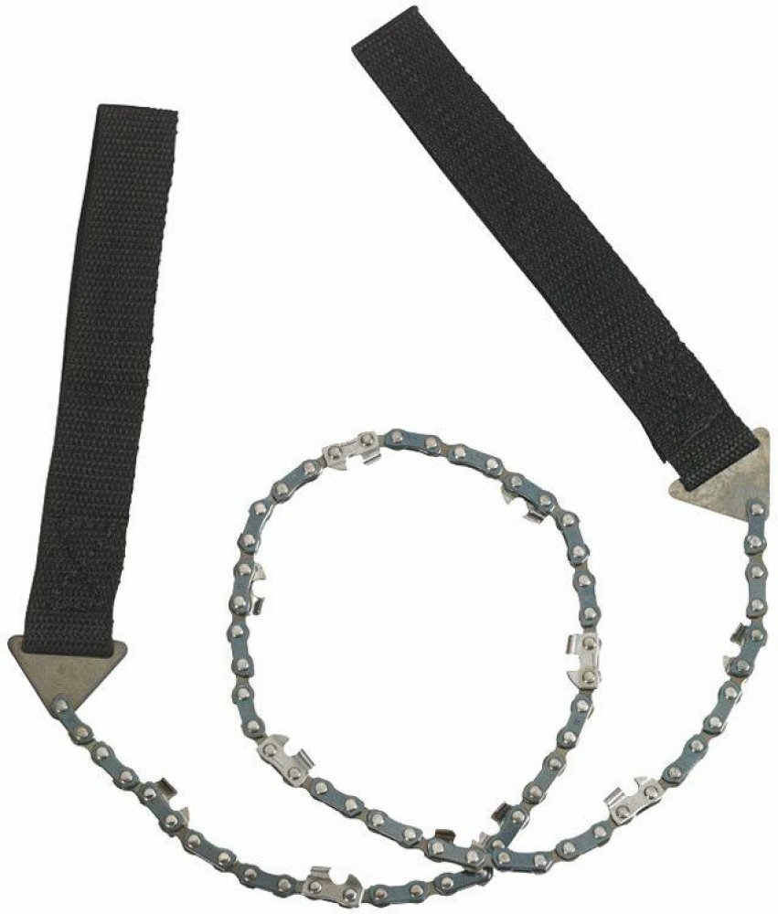 - Skládá se ze dvou nylonových rukojetí a robustního řetězu, který lze snadno nabrousit