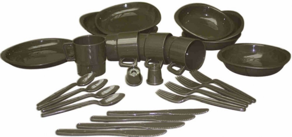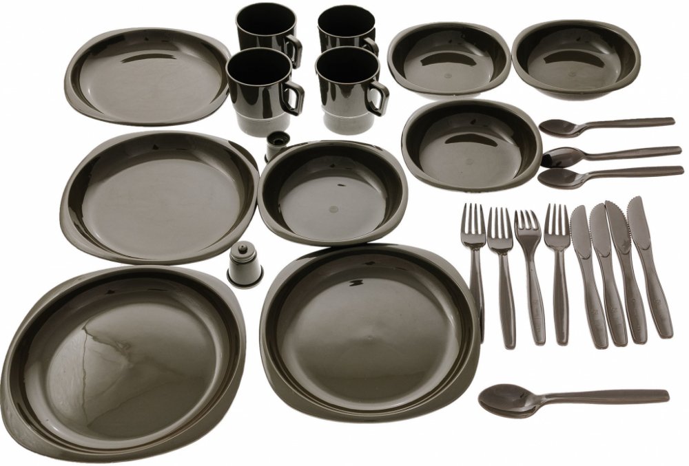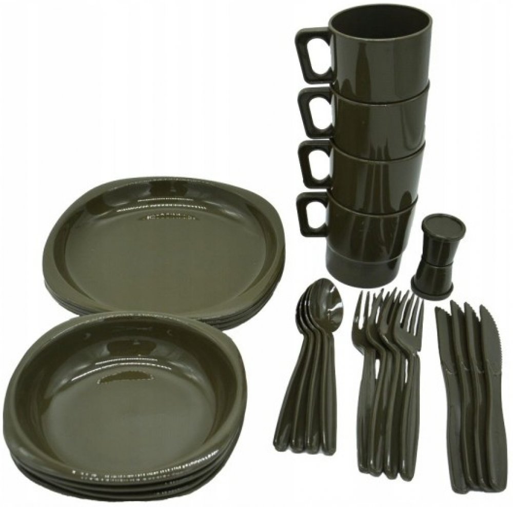 Jídelní sada campingového nádobí pro 4 osoby vhodná pro pikniky a kempování.