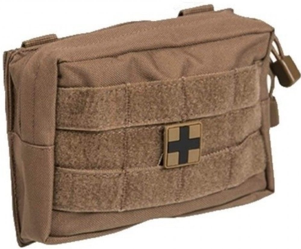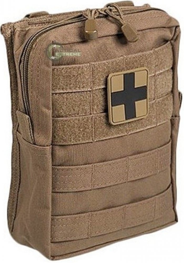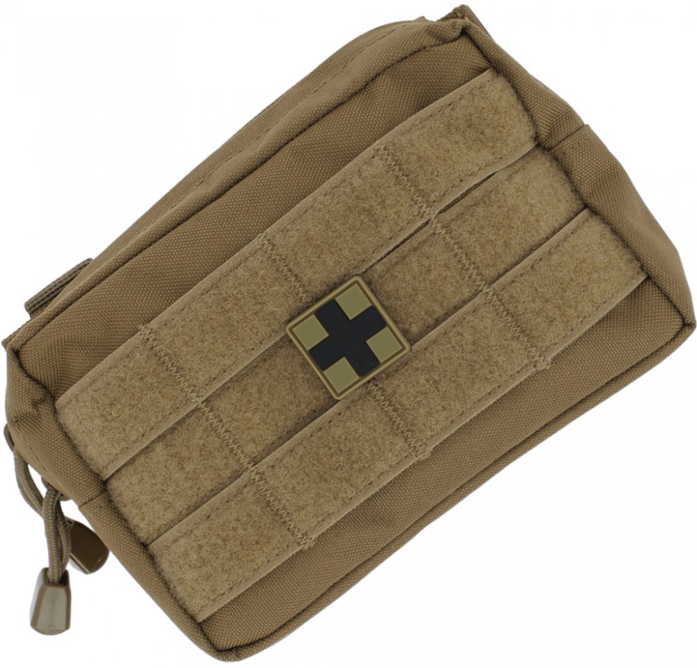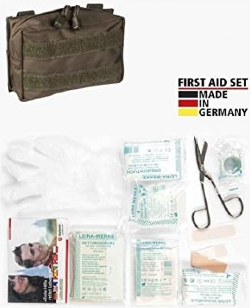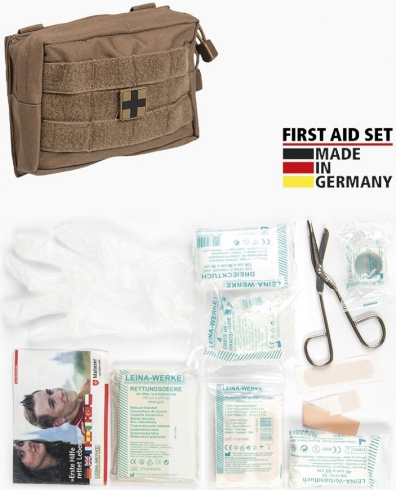 Mil-Tec souprava první pomoci. Materiál tašky 100% polyester. Obsahuje vše potřebné: sterilní malé obvazy, sterilní velké obvazy, různé sterilní obvazy, sterilní obvazy na rány, ubrousky na čištění, různé náplasti, sádrové pásky, fixační obvazy, trojúhelníkové šátky, záchranná termo přikrývka, nůžky, sterilní rukavice, návod na poskytnutí první pomoci.