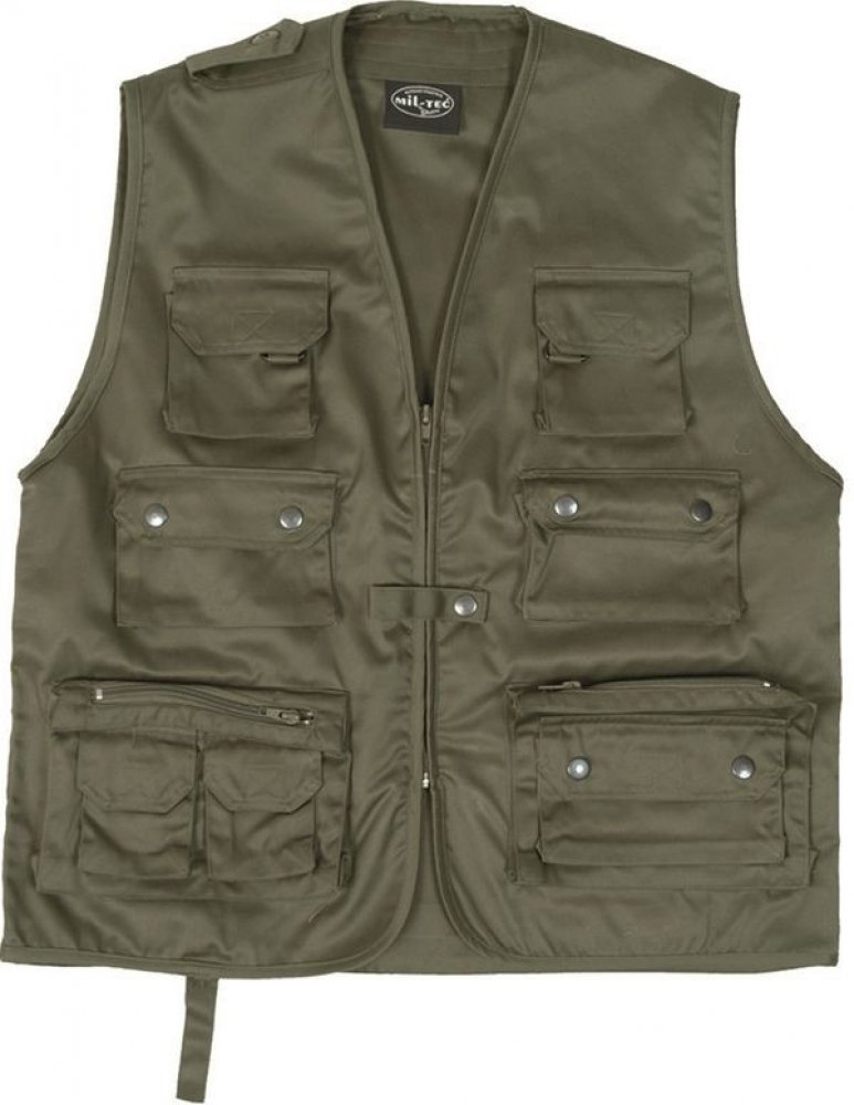 Víceúčelová vesta od výrobce Mil-Tec s množstvím kapes různých velikosti (celkem 14 vnější i vnitřních kapes) Má zdvojený materiál, komfortní zip krytý légou se zapínáním na druky. Výrobce dbal na kvalitu. materiál je kvalitní a odolný.
