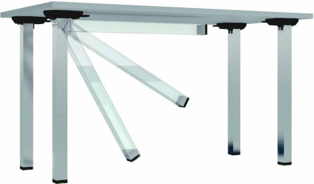 Sklopná ocelová stolová noha MILADESIGN. Příruba s možností sklopení nohy pod desku stolu.