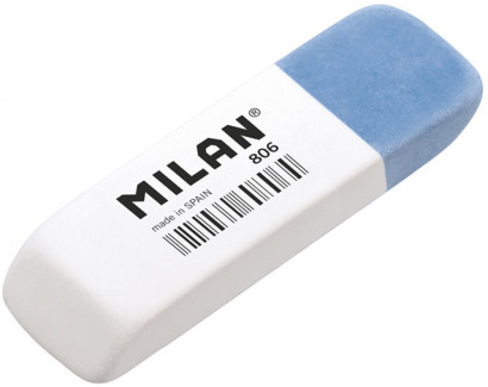 Guma MILAN 806 je dvojitá guma se zkosenými hranami ze syntetické gumy: pružnější a odolnější. Nabízí dvě silné mazací schopnosti: bílá pryž je pružná a dá se použít k vymazání široké škály grafitových tahů tužkou ze všech druhů papíru a modrá guma je abrazivní a má silnější mazací schopnost.Doplňující popis:72 x 24 x 10 mm