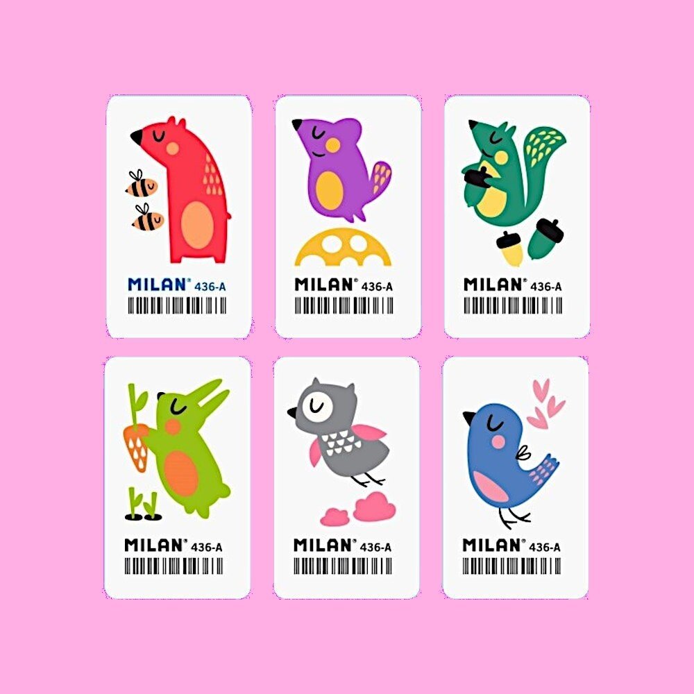 Jemná syntetická guma s obrázkem.