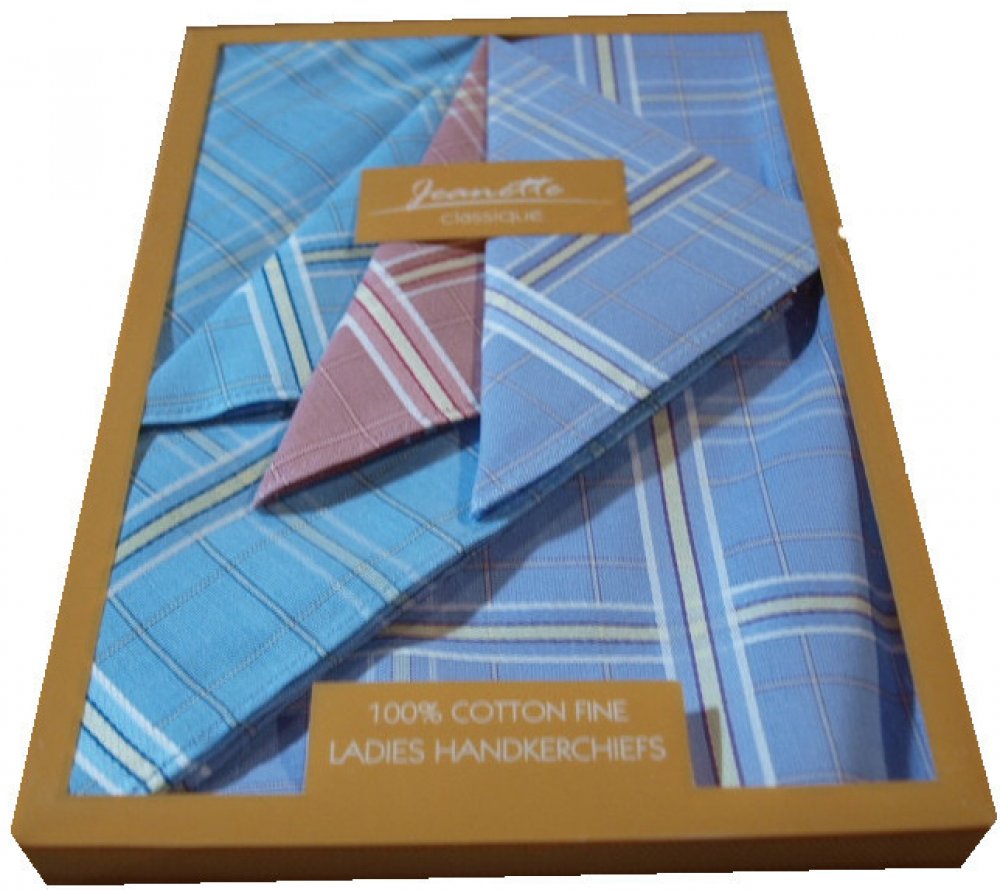 Dámské dárkové klasické bavlněné kapesníky jsou baleny v krabičce po šesti kusech. Rozměr kapesníků je cca 28cm x 28 cm. Kapesníky jsou vyrobeny ze 100% bavlny. Samozřejmostí je česká tradiční výroba.