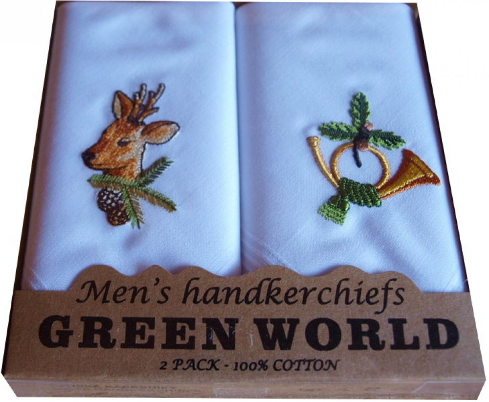 Mileta Kapesníky ílé myslivecké s výšivkou 2ks