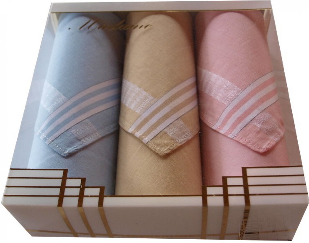 Dámské dárkové klasické bavlněné kapesníky jsou baleny v krabičce po třech kusech. Rozměr kapesníků je cca 30cm x 30 cm. Kapesníky jsou vyrobeny ze 100% bavlny. Samozřejmostí je česká tradiční výroba.