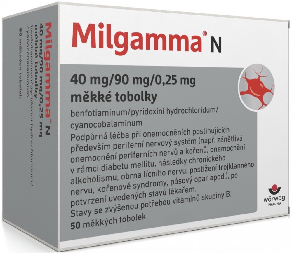 Kvalitní MILGAMMA N POR CPS MOL 50 za 342 Kč. Podpůrná léčba při onemocněních postihujících především periferní nervový systém. 1. NÁZEV PŘÍPRAVKU