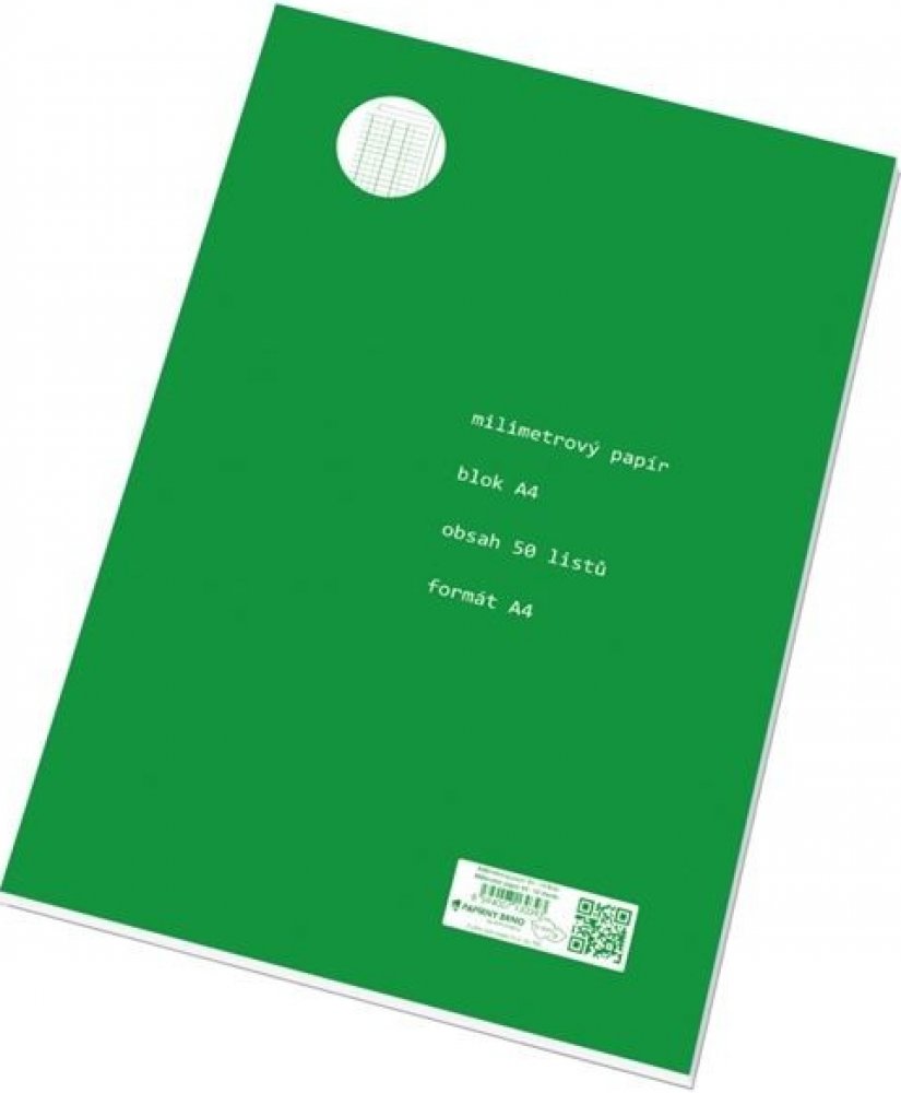 Zeleně předtištěný milimetrový papír je rozdělený po 1, 5 a 10 milimetrechJe vyrobený z bezdřevého papíru s plošnou hmotností 80 g/m2Jedna strana potištěná zeleným milimetrovým rastrem, druhá strana čistáLepený blok s 50 listy milimetrového papíruZavěšená krycí obálkaBezdřevý papírFormát A4