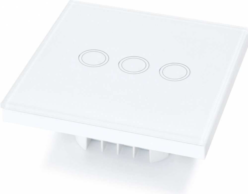 Trojitý dotykový spínač se skleněným čelním panelem je moderní zařízení, které funguje s běžnými i LED světelnými zdroji. Vypínač má přední panel vyrobený ze skla, které dále prodlužuje jeho životnost. Technické údaje: napájení - 110/230V spotřeba energie v klidovém stavu - ~0,02W minimální zátěž pro jeden LED obvod - 3W zatížení - klasické zdroje 3-300W / LED 3-150W materiál - plast, sklo barva spínače - bílá rozměry - 8,6 x 8,6 x 3,6 cm / tloušťka 1 cm po montáži na stěnu průměr montážního otvoru - krabice ø60 třída těsnosti - IP44 barva osvětlení, když se nepoužívá - modrá certifikace - CE, RoHS Důležité: Přiložený kondenzátor by měl být zapojen paralelně v posledním obvodu pouze v případě, že se po instalaci projeví efekt žhavení žárovky po jejím vypnutí, nezapomeňte také, že LED diody jsou citlivá zařízení a polarita je poněkud důležitá, patice žárovky by měla být vždy dodávána s fázovým vodičem "L" a závitem žárovky "N".