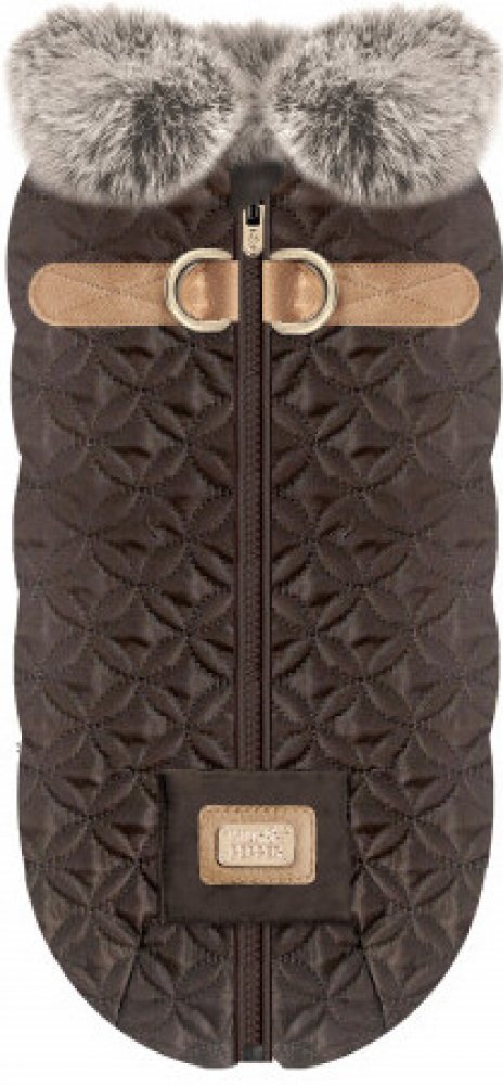 Zimní stylový kabát pro psy s hřejivou kožešinkou. Kabátek tvoří z jedné strany voděodolná vrstva ze saténu hnědé barvy a druhá strana je z příjemně měkký a hřejivý kožíšek. Praktický design s vestavěným postrojem ve formě kovových poutek pro přichycení vodítka na hřbetní straně usnadňuje manipulaci a zajišťuje bezpečné procházky. Kabátek má zapínání na patentky s vyrytým logem M&P. Kabát je z leh...