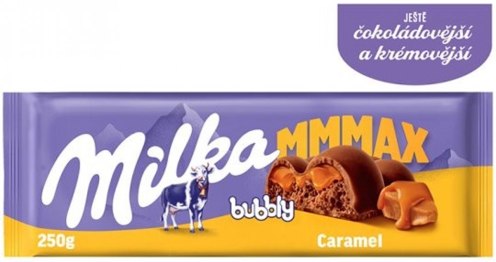 Milka 250 g mléčné Milka karamelové tabulkové smíšené materiály 2110.0 kcal na 100 g 26.0 g na 100 g 59.0 g na 100 g