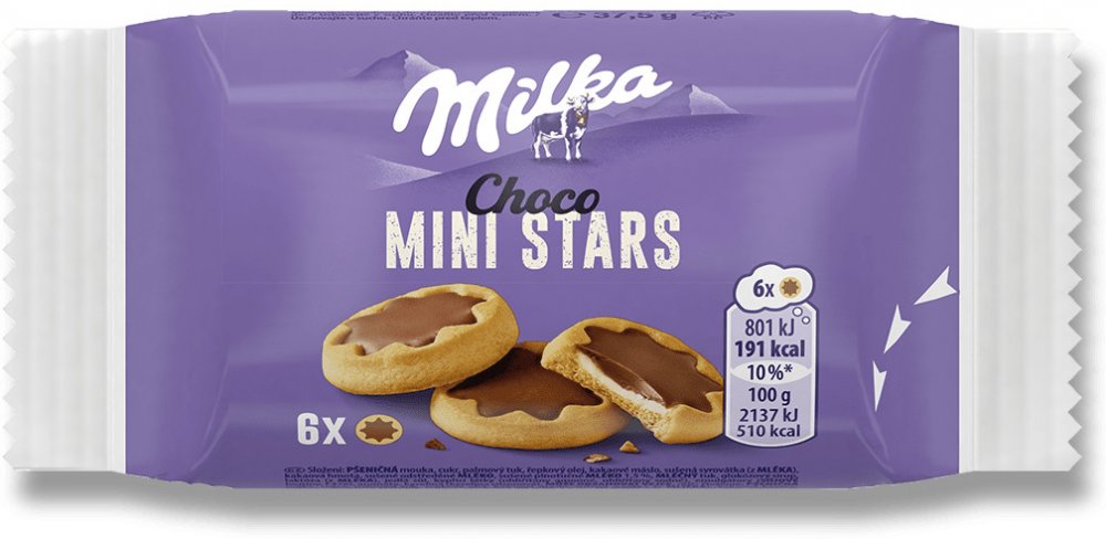 ZÁKONNÝ NÁZEV POTRAVINYSušenky s mléčnou náplní (16 %) polomáčené mléčnou čokoládou z alpského mléka (23 %).SLOŽENÍPŠENIČNÁ mouka, MLÉČNÁ čokoláda z alpského MLÉKA 23 % [cukr, kakaové máslo, kakaová hmota, sušené odstředěné MLÉKO, sušená syrovátka (z MLÉKA ), MLÉČNÝ tuk, emulgátory (SÓJOVÝ lecitin, E 476), aroma], cukr, rostlinný tuk a olej (palmový, řepkový)ALERGENYVejce a výrobky z nich,Obilovin...