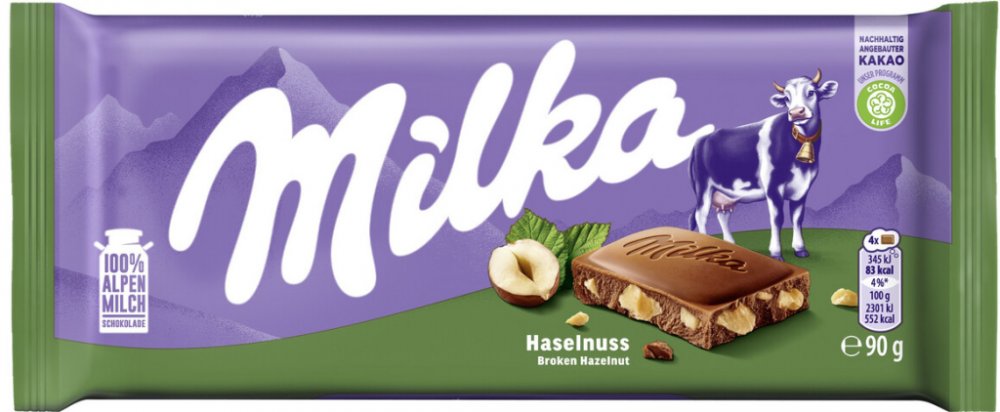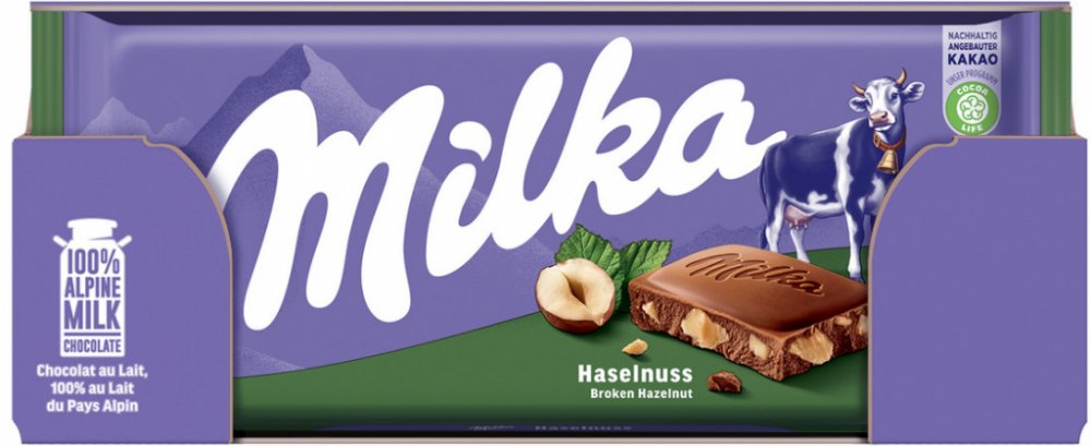 Mléčná čokoláda z alpského mléka, obohacená o kousky drcených lískových oříšků. Jedinečná a lahodná chuť.