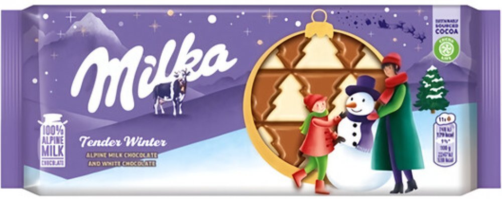 -- Mléčná čokoláda s Vánočními motivy z alpského mléka s bílou čokoládou (13 %).Zajímavost:Alpské mléko: Získávání alpského mléka je klíčovou součástí našeho závazku komunitě a farmářům. Veškeré mléko obsažené v Milce pochází ze 100km okruhu alpské…