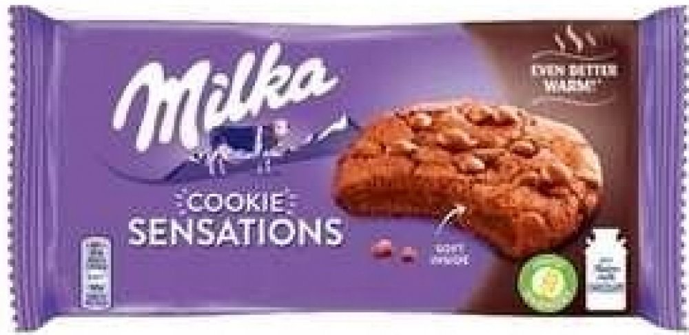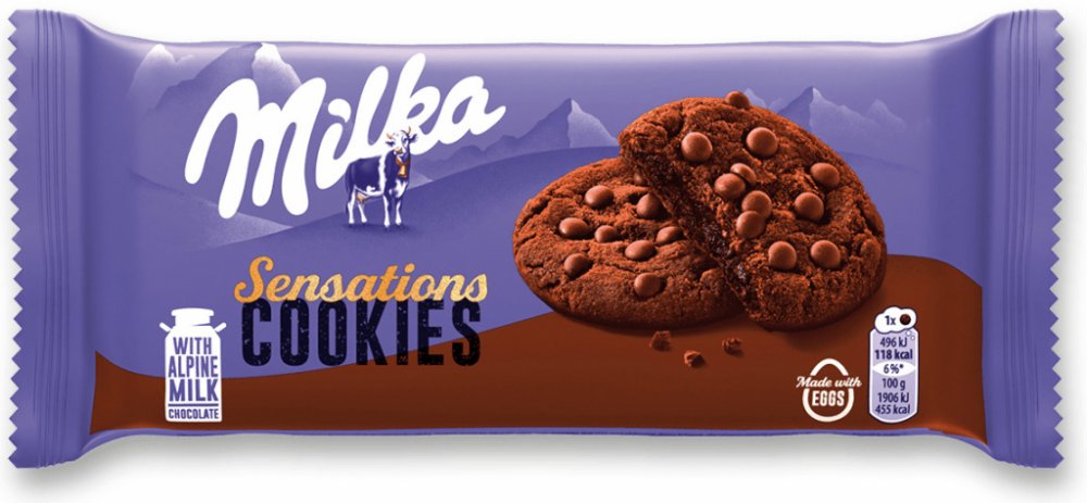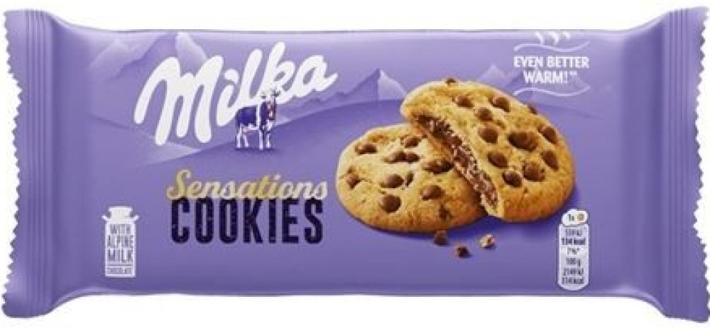 cena za 1 kg je 416.57 kčKakaové sušenky s měkkým středem a kousky mléčné čokolády z alpského mléka (20,2 %).Složení :Cukr, Pšeničná mouka, Vejce, Glukózový sirup, Kakaové máslo, Palmový tuk, Sušená syrovátka (z mléka), Mléčný tuk, Kakaový prášek 3,7 %, Zvlhčující látka (glycerol), Sušené plnotučné mléko, Kakaová hmota, Modifikovaný škrob, Bramborový škrob, Kypřící látky (hydrogenuhličitan amonný,...