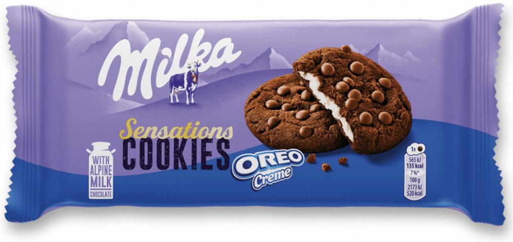 Křupavé Cookies s extra velkými kousky pravé čokolády Milka a jemnou vanilkovou náplní. Obsah 156 g.Složení: cukr, pšeničná mouka, rostlinné oleje (slunečnicový, řepkový), palmový tuk, mléčný tuk, kakaový prášek (3,5 ), sušená syrovátka (z mléka), škrob, sušené plnotučné mléko, kakaová hmota, kakaové máslo, pšeničný škrob, kypřicí látky (uhličitany amonné, uhličitany sodné, difosforečnany), laktóza (z mléka), emulgátor (sójové lecitiny), jedlá sůl, aromata, sušené odstředěné mléko.Může obsahovat vejce a ořechy.Výživové hodnotyna 100 gjedna sušenkaEnergetická hodnota2148 kJ / 514 kcal558 kJ / 134 kcalTuky28 g7,2 gz toho nasycené mastné kyseliny9,8 g2,5 gSacharidy60 g16 gz toho cukry38 g10 gVláknina2,0 g0,5 gBílkoviny4,1 g1,1 gSůl0,58 g0,15 gAdresa distributoraMondelez Czech Republic s.r.o.Karolinská 661186 00 Praha 8 KarlínČeská republika