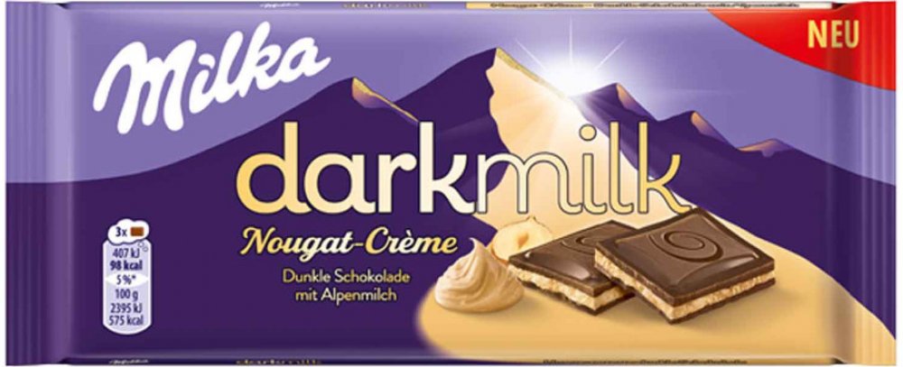 Milka darkmilk hořká alpská čokoláda s nugátovým krémem 85 g