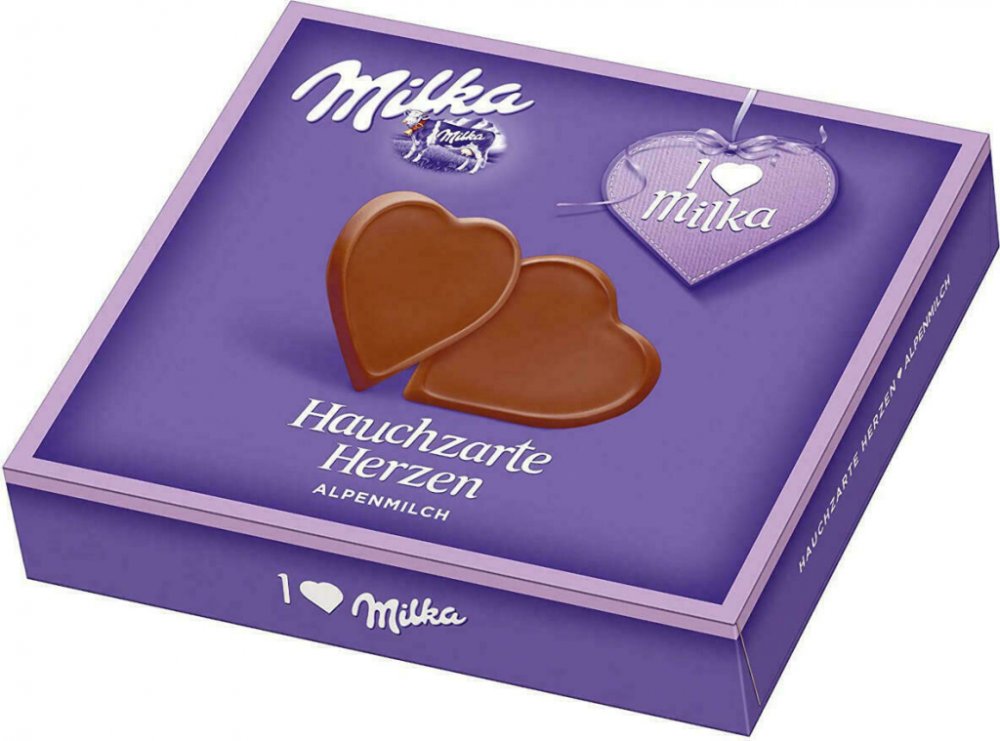 Milka Hauchzarte Herzen z jemně se rozpouštějícího alpského mléka Milka 130 gMilka Hauchzarte Herzen jsou sladkým vyznáním lásky z nejjemnější čokolády Milka Alpenmilch – jemné, krémové a plné emocí. Ve stylovém 130g dárkovém balení se skrývají malá čokoládová srdíčka, která potěší nejen chuťově, ale i emocionálně. Ideální na Valentýna, Den matek, narozeniny nebo prostě jen jako dárek s vzkazem „M...