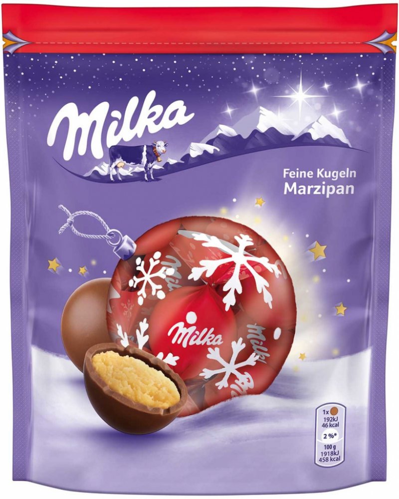 Marcipánové kuličky od Milka se skládají z náplně šťavnatého a nejjemnějšího marcipánu a je obklopen alpskou mléčnou čokoládou. Tato lahodná kompozice vás svede a umožní vám dopřát si tající sny, když si během adventu budete užívat kulaté pralinky.