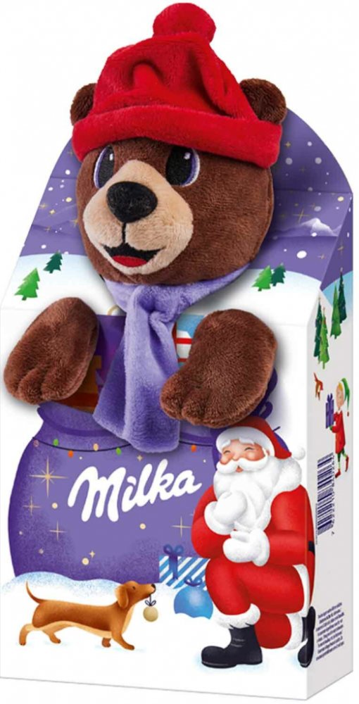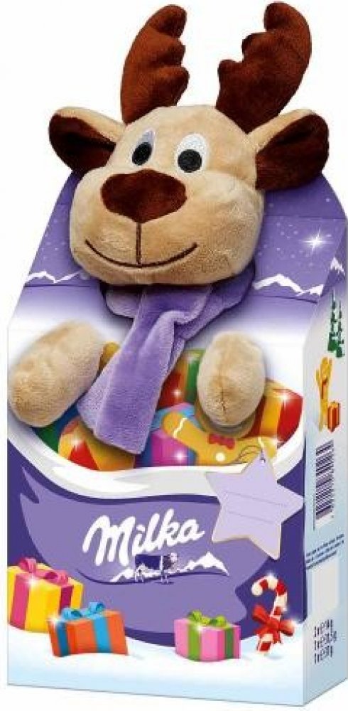 Milka s plyšákem96,5 g Milka balíčekKolekce mléčné čokolády z alpského mléka, mléčné čokolády s náplní a kousky sušenek a dražé z mléčné čokolády. Balení obsahuje2× kravičku z mléčné čokolády z alpského mléka1× sáček dražé z mléčné čokolády z alpského mléka1× mléčná čokoláda z alpského mléka s náplní s kousky sušenek1× plyšová hračkaVýživové hodnoty na 100 g Energetická hodnota 2205 kJ / 527 kcal Tuky 28 g, z toho nasycené mastné kyseliny 16 g Sacharidy 61 g, z toho cukry 57 g Bílkoviny 5,4 g Sůl 0,39 g Nutriční hodnoty a složeníCukr, kakaové máslo, sušené odstředěné MLÉKO, kakaová hmota, sušená syrovátka (z MLÉKA), rostlinné tuky (palmový, palmojádrový), MLÉČNÝ tuk, PŠENIČNÁ mouka, emulgátor (SÓJOVÉ lecitiny), kakaový prášek se sníženým obsahem tuku, glukózo-fruktózový sirup,...