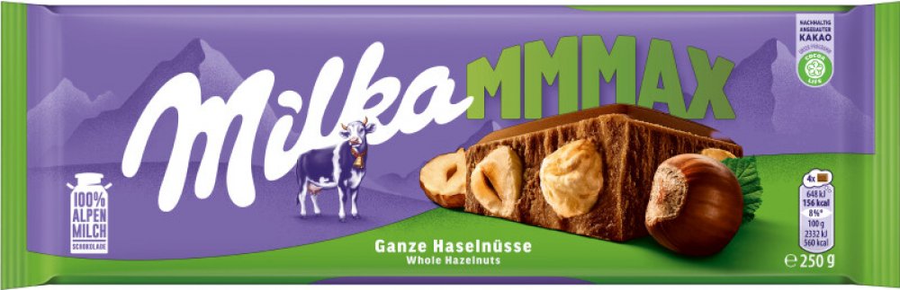 Milka 250 g mléčné Milka oříškové tabulkové smíšené materiály 560.0 kcal na 100 g 36.0 g na 100 g 47.0 g na 100 g