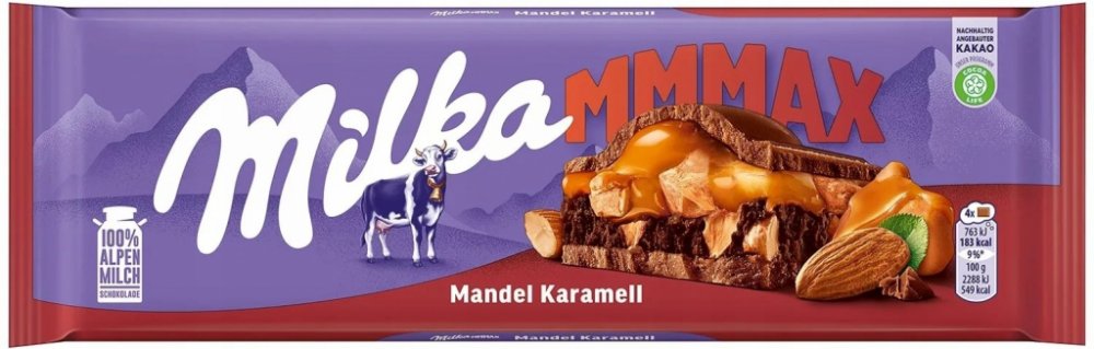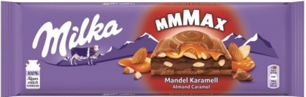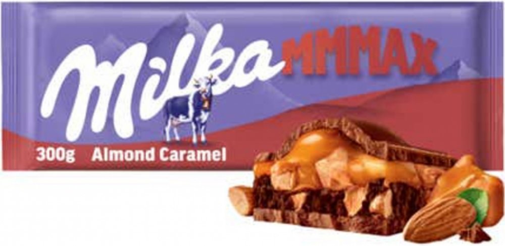 Milka Mmmax Almond Caramel mléčná čokoláda a mandle 300 g za internetové ceny