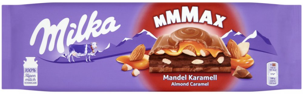 NUTRIČNÍ HODNOTY produktu - Milka Mmmax Almond Caramel mléčná čokoláda a mandle 300 g / 100g výrobku