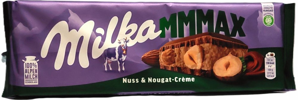 Milka 300 g mléčné nugátové tabulkové 569.0 kcal na 100 g 37.0 g na 100 g 49.0 g na 100 g