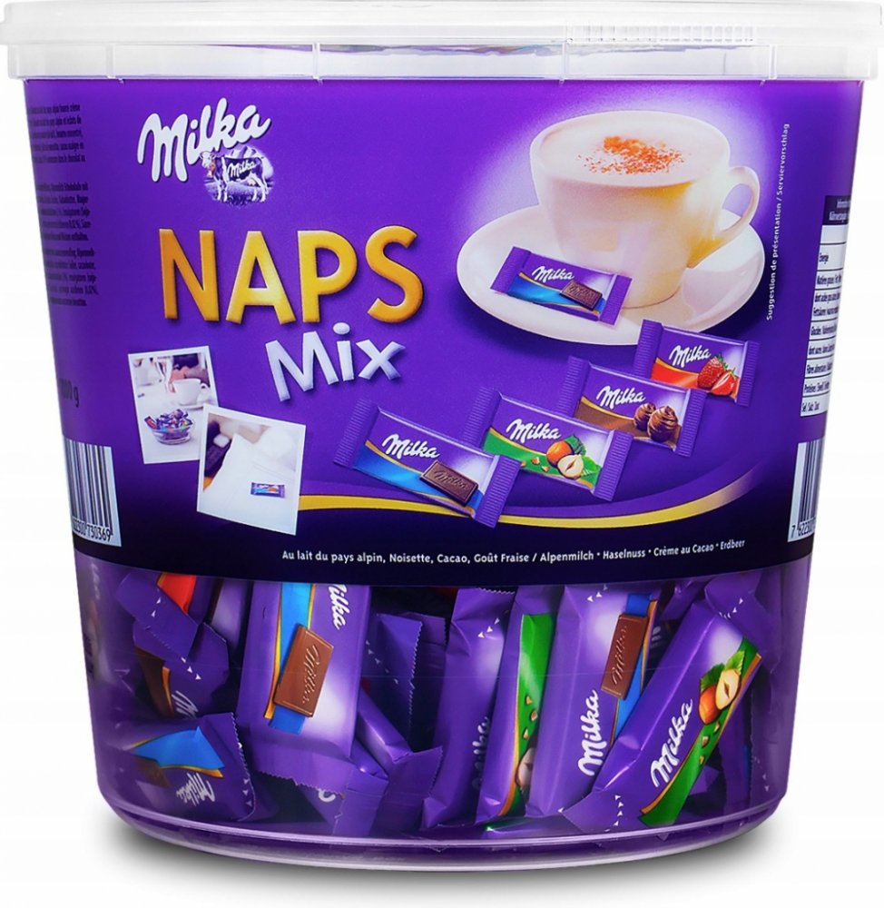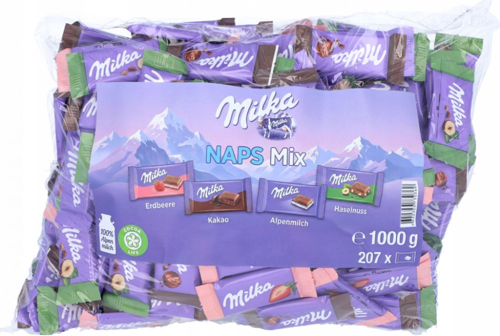 Balení obsahuje celkem 207 ks čokoládek s příchutí - mléčná čokoláda, oříšková, mléčná s kakaovým krémem, mléčná s jakodovým krémem