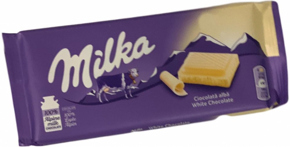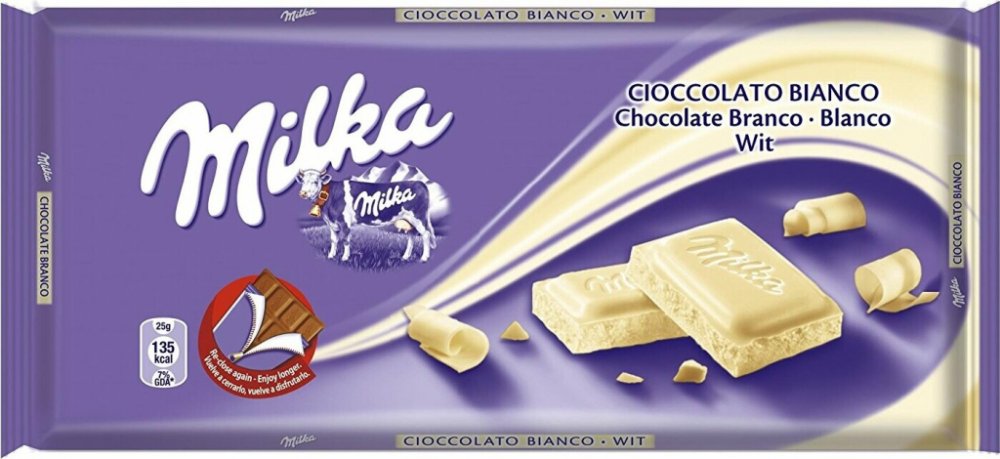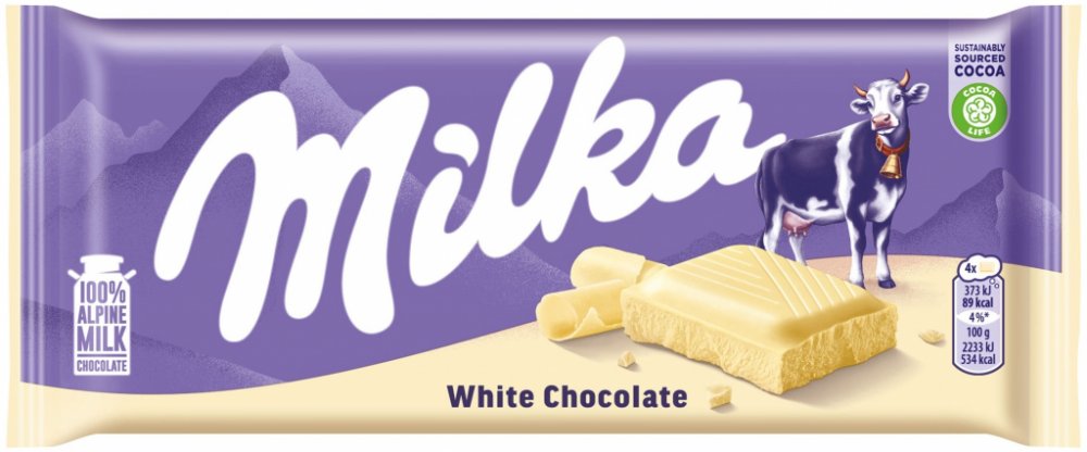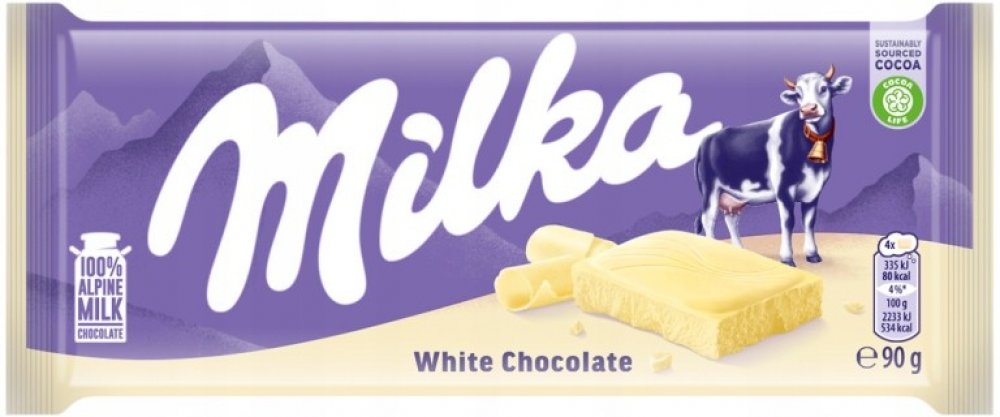 Složení: Cukr, Kakaové máslo, Sušené odstředěné mléko, Sušená syrovátka (mléko), Mléčný tuk, Emulgátor (sójový lecitin), Přírodní aroma.