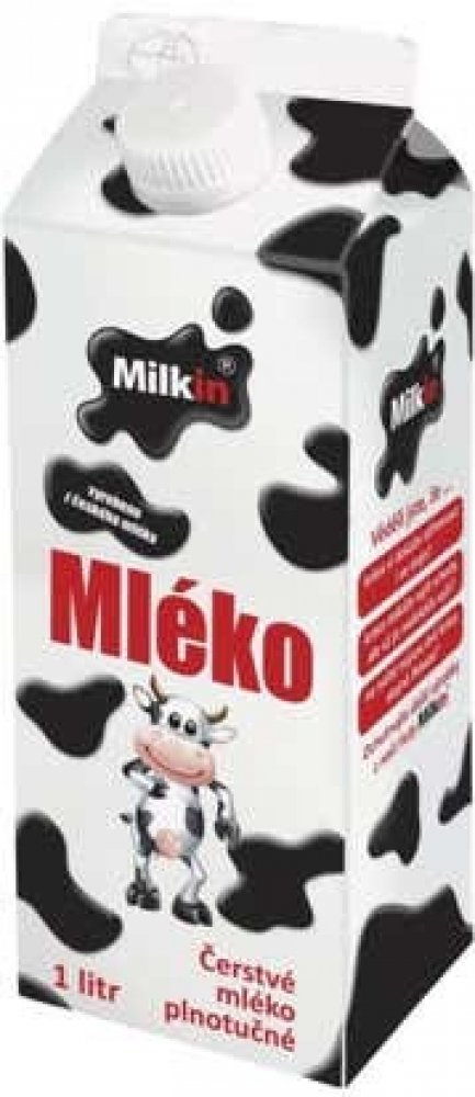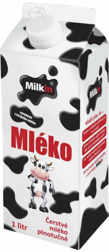 Cena se může v jednotlivých regionech lišit. -- Čerstvé mléko plnotučné Milkin je vyrobeno z českého mléka. Přináší lahodnou chuť a hodnotné živiny. Baleno v praktickém kartonu od elopak s uzávěrem. Věděli jste, že ... • kráva má pouze jeden žalude, ale rozdělený na 4 části?• krávy si ve stádu tvoří kamarády, s kterými tráví víc času?• v roce 2005 skončila česká kráva Fanatička na 4. místě v celos...