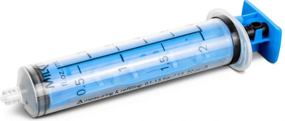 Náhradní stříkačka milKit Compact pro plnění tmelu do bezdušových plášťů.