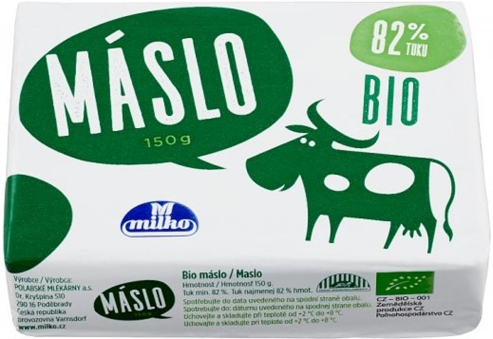 JEN PRO OSOBNÍ ODBĚR NEBO ROZVOZ PO HK!Bio máslo je vyrobeno z čerstvého kravského mléka, které pochází výhradně z českých ekofarem. Máslo se vyrábí tradičním, šetrným stloukáním smetany v máselnici. Bio máslo je smetanově žluté, na řezu lesklé s hladkým povrchem. Jeho jemná máslová chuť a vůně je nezaměnitelná a jistě osloví i nejnáročnější klienty. SLOŽENÍ: bio smetana Výživové hodnoty ve 100g: Energie 3054kJ/743kcal, tuky 82g z toho nasycené mastné kyseliny 52g, sacharidy 0,7g z toho cukry 0,5g, bílkoviny 0,5g, sůl 0,02g.