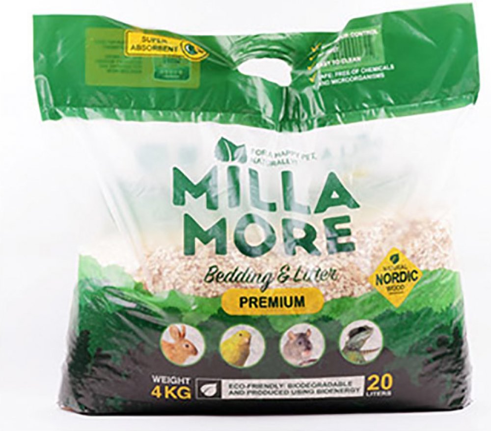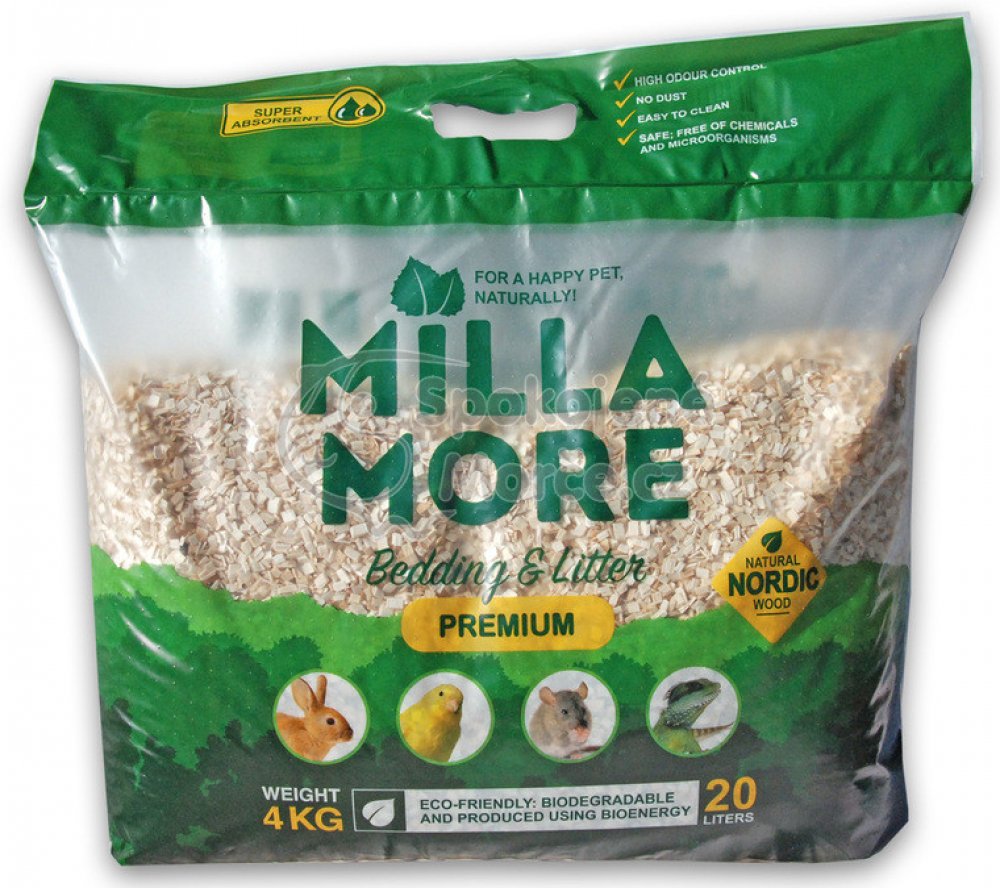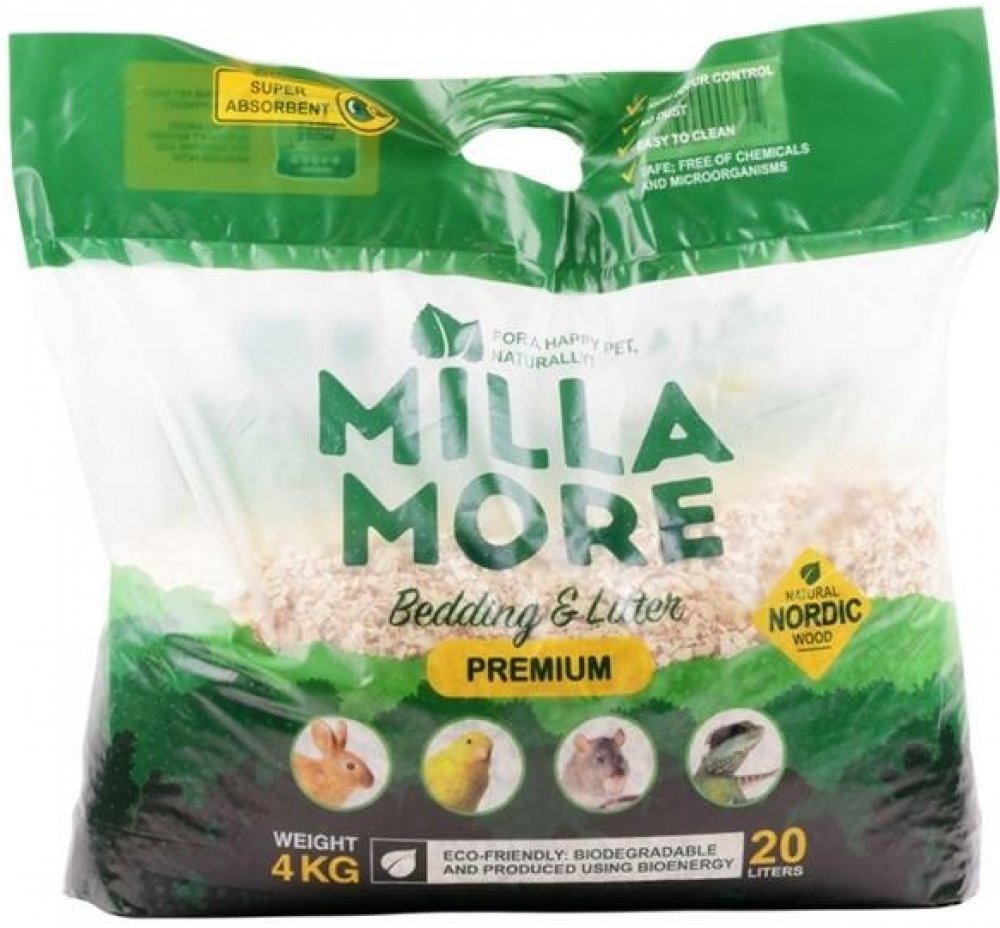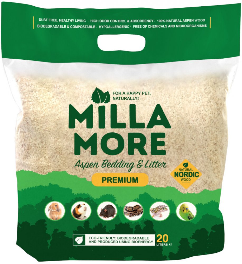 Pro podestýlání drobných savců a plazů lze kombinovat větší štěpky Premium s drobnějšími štěpkami Supersoft. Hnízdní hmota MillaMore poslouží zvířatům jako materiál pro stavbu hnízd, úkrytů i jako zábavný materiál na hraní.