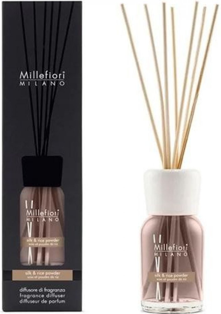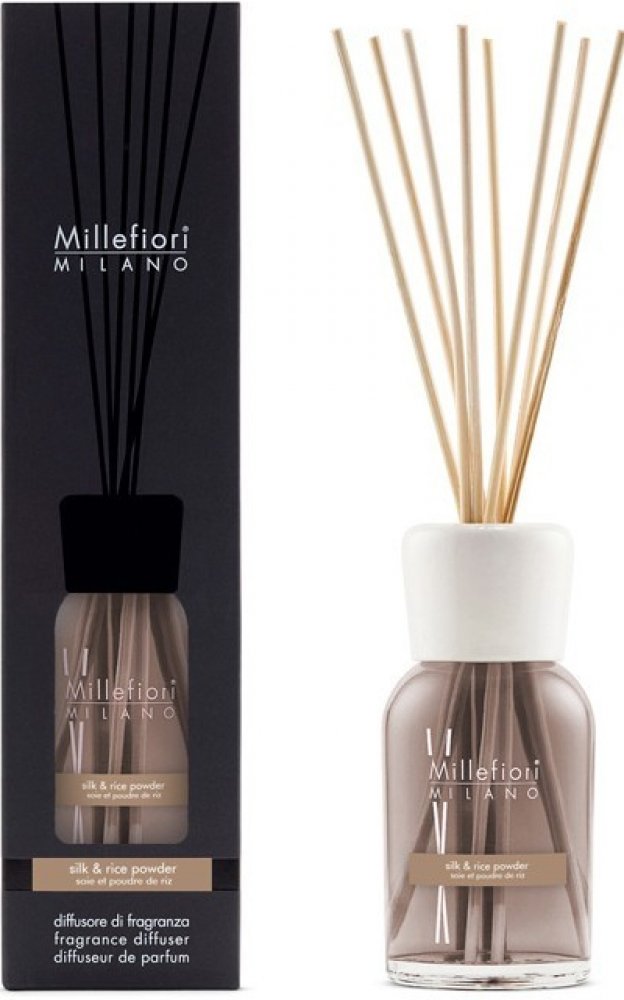 Pudrová vůně ovesného mléka s rýžovým práškem jsou zabalený do květinových tónů.Designový skleněný difuzér Natural značky Millefiori Milano s bílým keramickým uzávěrem se hodí především do velkých prostor jako jsou haly, kanceláře a obývací pokoje.Difuzér o objemu 500 ml obsahuje 12 ks bambusových tyčinek, ze kterých se vůně uvolňuje do prostoru. Čím větší počet tyčinek do nádobky ponoříte, tím silněji bude vonná esence cítit. Intenzitu můžete zvýšit i tím, že zhruba jednou za týden vyjmete tyčinky z difuzéru a otočíte je namočenou částí vzhůru. Některé vonné esence mohou bambusové tyčinky přiměřeně zabarvit.Náplň vydrží přibližně 6 měsíců v závislosti na teplotě a větrání místa, kam difuzér umístíte. Po vyprchání původní náplně vypláchněte difuzér teplou vodou a nalijte novou náplň. Při změně náplně v difuzéru nebo po jednom roce Vám doporučujeme vyměnit i tyčinky.Natural můžete věnovat jako praktický a přitom luxusní dárek. Balení obsahuje jeden kus difuzéru s náplní.Vůně: Hedvábí a rýžový prášek