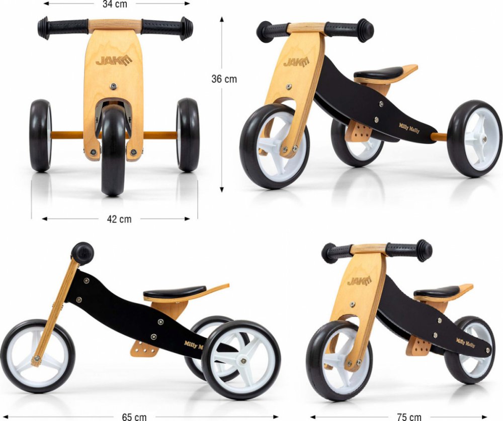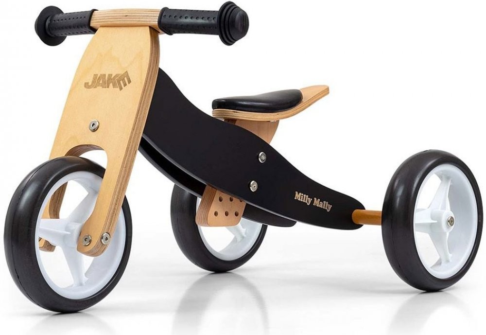 Dětské multifunkční dřevěné odrážedlo Milly Mally JAKE 2v1 je ideální pro děti, které se právě začínají učí jezdit na kole a přitom nejsou schopné udržet rovnováhu na dvou kolech. Výhodou odrážedla JAKE je, že z tříkolky se snadno stane odrážedlo na dvou kolech.
