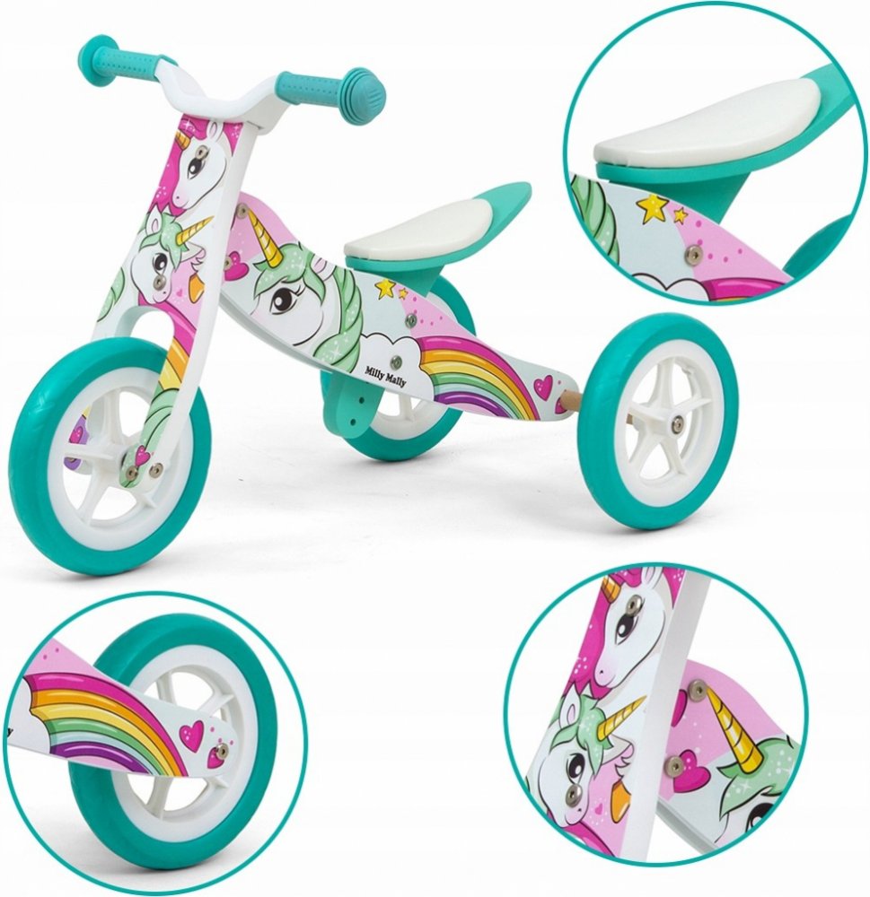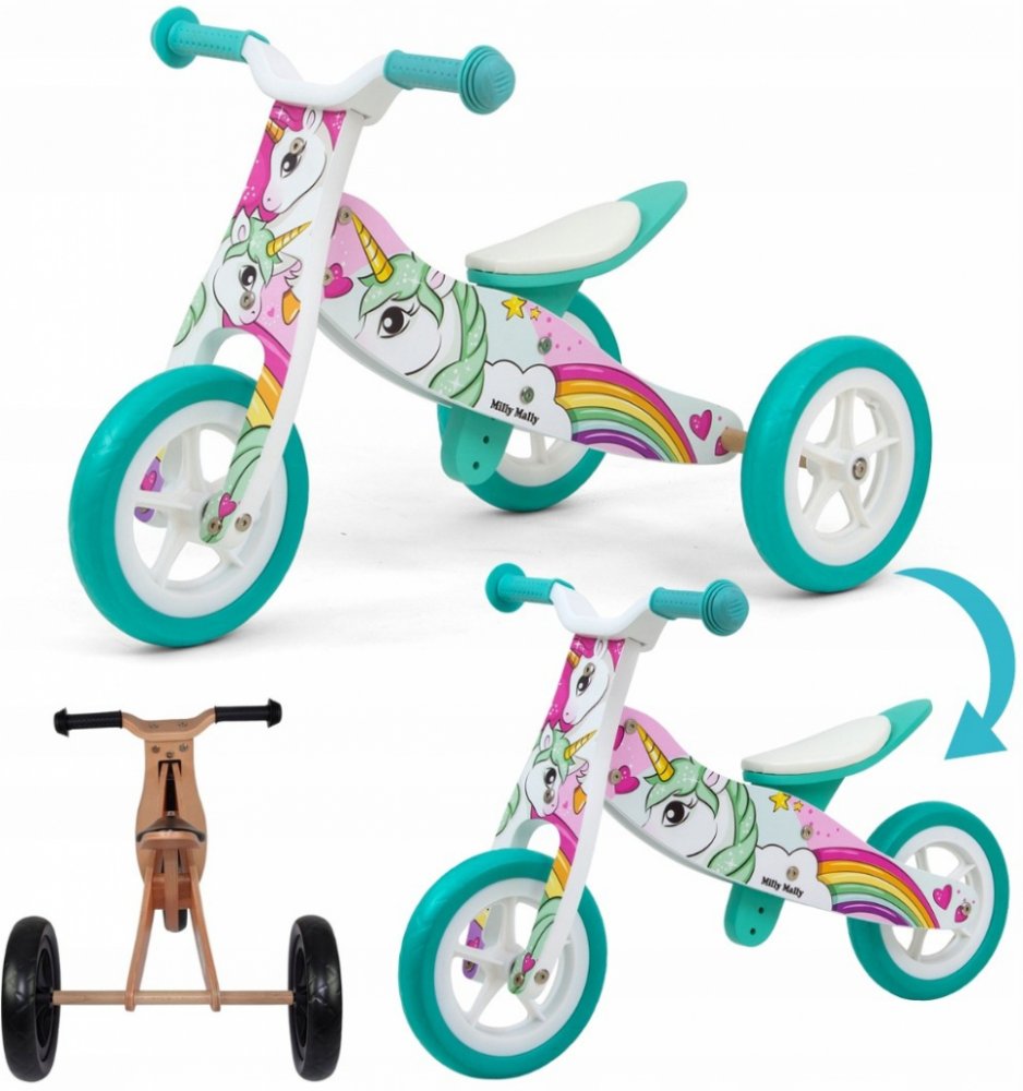 Dřevěné odrážedlo Milly Mally Look 2v1 je ideálním řešením pro děti, které se právě začínají učí jezdit na kole a přitom ještě nejsou schopné udržet rovnováhu na dvou kolech. Hlavní výhodou odrážedla Look je, že tříkolku snadno a rychle předěláte na odrážedlo na dvou kolech. Je vyrobeno z pevného dřeva a ozdobeno krásnými veselými barvami a obrázky.