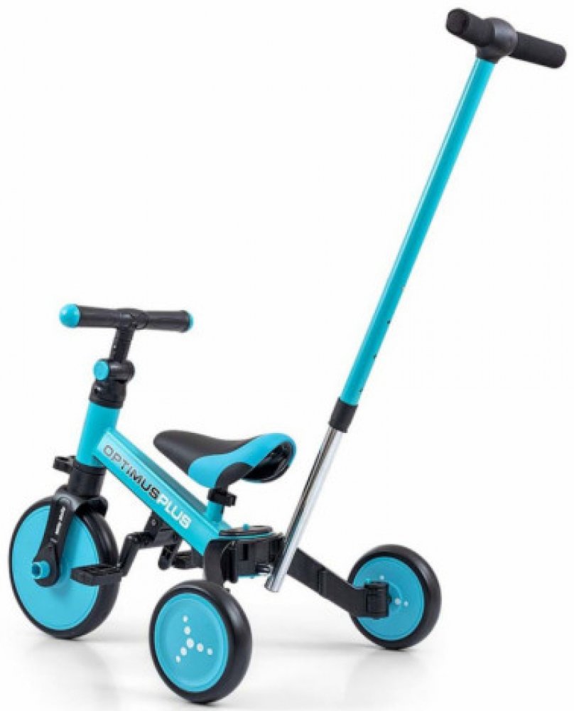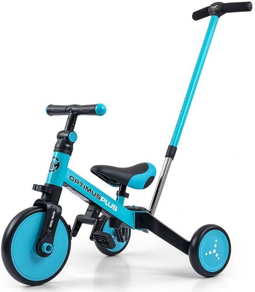 Dětská tříkolka 4v1 Milly Mally Optimus Plus s vodící tyčí blue