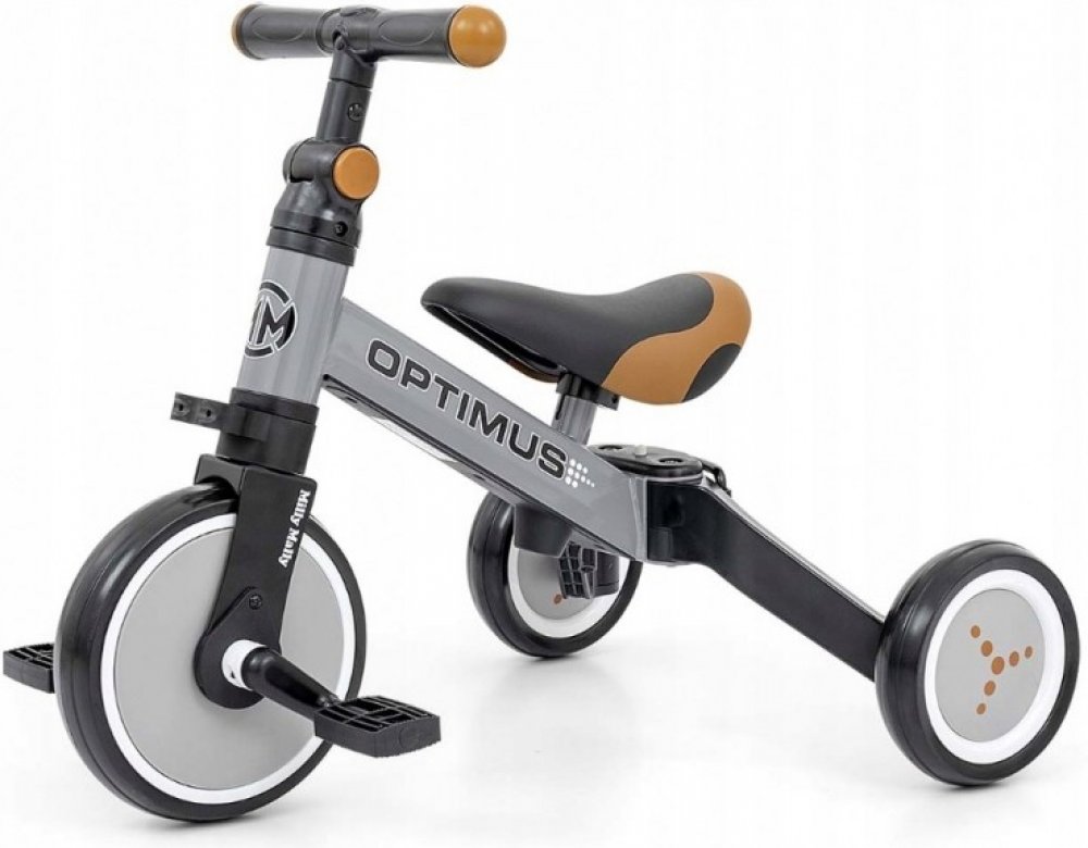 Optimus je navržen tak, aby byl jednou z nejlepších voleb pro první vozidlo vašeho dítěte. Díky stabilní tříkolové konstrukci poskytuje dítěti patřičnou míru bezpečí a usnadňuje získávání nových dovedností. Když dítě zvládne základy jízdy, můžeme přidat pedály nebo z něj udělat klasické balanční kolo. Kolo bylo vyrobeno z vysoce kvalitních materiálů. Pěnová kola usnadňují jízdu při zachování dostatečného pohodlí. Nastavitelná výška sedla umožňuje přizpůsobit kolo výšce dítěte.