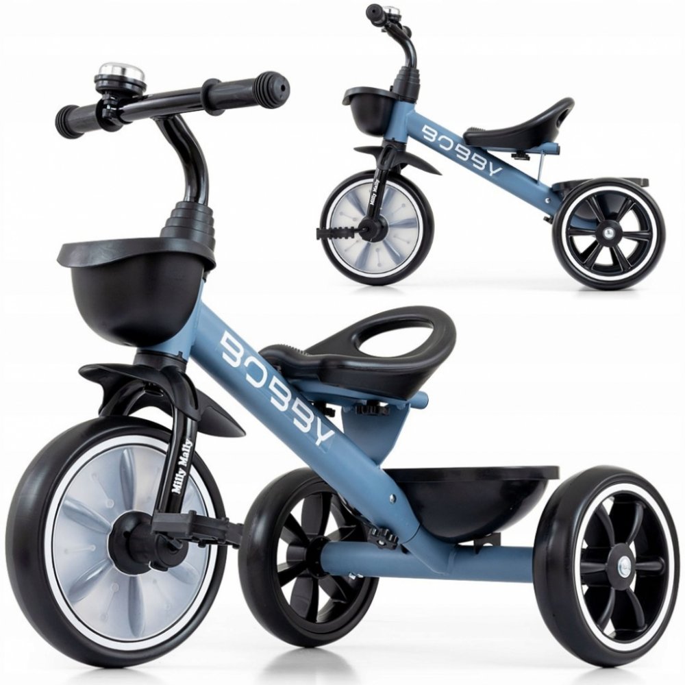 Tříkolka Milly Mally BOBBY byla vytvořena s ohledem na pohodlí a bezpečnost batolat a komfort rodičů. Ideální řešení pro aktivní batolata, která nudí jízda v kočárku. Bobby je stabilní a bezpečná tříkolka pro vaše dítě s nadčasovým designem a pohodlným tvarovaným sedadlem. Přední kolo je zajištěno tak, aby nedošlo k zachycení nožiček vašeho dítěte, když náš malý cyklista šlape do pedálů. Řídítka kola jsou odnímatelná pomocí tlačítka na přední straně řídítek. K pohodlí jízdního kola Bobby by Milly Mally přispívá krásně navržené a tvarované sedátko, které slouží také jako držadlo na přenášení. Kombinace kovové konstrukce a komponentů vyrobených z nejkvalitnějších materiálů zaručuje odolnost, která bude fungovat za všech podmínek. A široká a odolná kola z pěny EVA zajišťují trvanlivost a dlouhé používání. Tříkolka BOBBY s odnímatelnými pedály má 2 košíky, jeden umístěný na řídítkách, druhý v zadní části kola, např. na hračky. Při jízdě na kole si dítě procvičuje hrubou motoriku, sílu a svaly nohou, udržuje rovnováhu a zlepšuje pohybovou koordinaci, čímž se správně a zdravě vyvíjí. Nejdůležitější výhodou tříkolky BOBBY je zábava, kterou dětem poskytuje, a jistota pro rodiče, že jejich dítě používá bezpečné kolo, protože při vývoji tříkolky BOBBY využili dlouholeté zkušenosti a při její výrobě použili vysoce kvalitní materiály.