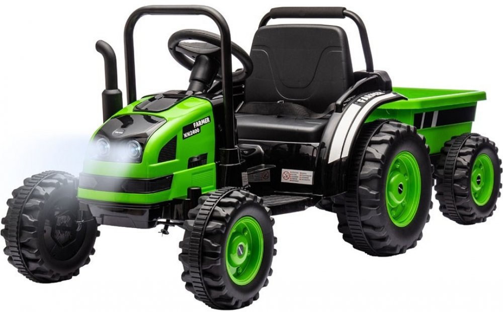 VLASTNOSTI PRODUKTU:- Vůz na baterie s přívěsem- Traktor vybavený baterií 12V / 7Ah- 2 x 35W 12V motory- Průměrná rychlost 3-5 km/hod.- Kloubové řízení- Výkyvná přední náprava- Kovové bezpečnostní tyče vpředu a vzadu- Imitace komína / výfukového potrubí- Osvětlená světla na přední části vozidla- Kovové nápravy kol- Logo FARMER na podbězích kol traktoru a na boční kapotě vozidla- Logo Milly Mally na krytech kol a uprostřed volantu- Kola s terénním vzorkem- Průměr kol: 31 cm- Vypínač napájení - spouštění motoru traktoru s vířením a vypínání vozidla- Akcelerátor (plynový pedál)- Pozvolný start motoru/žádné škubání- Přepínač jízdy vpřed/vzad/neutrál na pravé straně přístrojové desky- Přepínač pomalé/rychlé jízdy na levé straně přístrojové desky- Tlačítko Stop na přístrojové desce- Přední část vozidla vybavená LED světlyPohodlné sedadlo s bezpečnostním pásem- Odpružení zadní nápravy- Tlačítko zvukové houkačky- Audio panel: rádio, Mp3 s multifunkčními hudebními efekty, USB, Bluetooth- Ovládání hlasitosti hudby +/-- Ukazatel nabití baterie na panelu mp3- Přívěs za traktor je odnímatelný- Vestavěný mechanický systém pro ochranu dětí- Hák pro připevnění přívěsu k zadní části traktoru- Nabíječka 1x 12V 1000 mA- Návod k použití a montážní sada- Věkový rozsah 36 M+- Maximální zatížení: 30 kg- Dostupné barvy: zelená, žlutá, červená, modrá- Splňuje evropské bezpečnostní normy- Napájení - dobíjecí baterie (součástí dodávky)- Dálkové ovládání (součást sady)