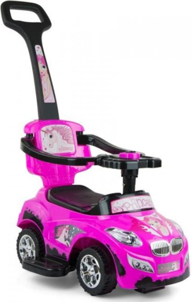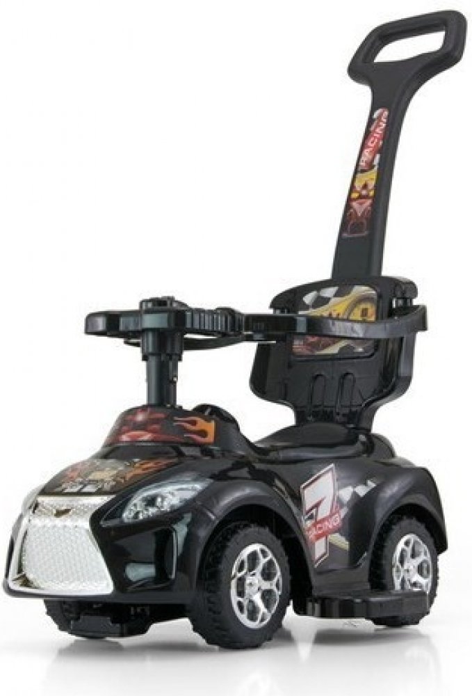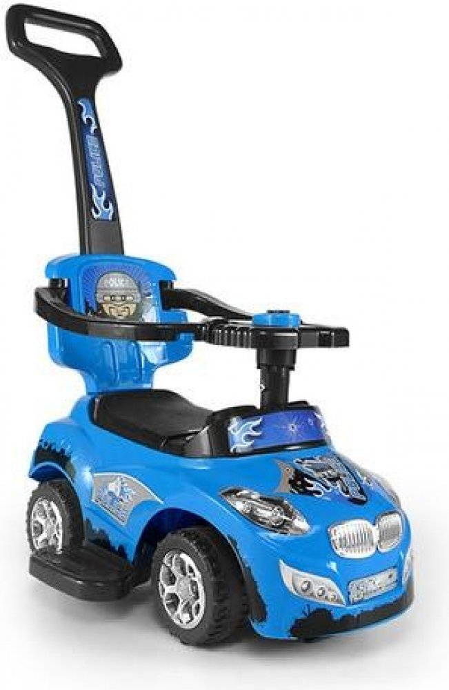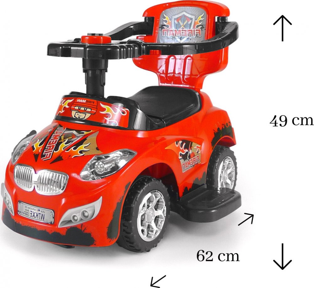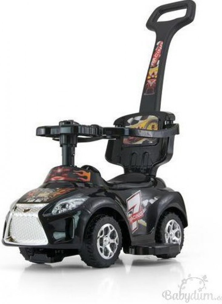 Pojazd w pięciu ciekawych wzorach, stylizowanych na pojazdy wyścigowe oraz w żywej kolorystyce zachęca malucha do zabawy i odkrywania nowych funkcji.
