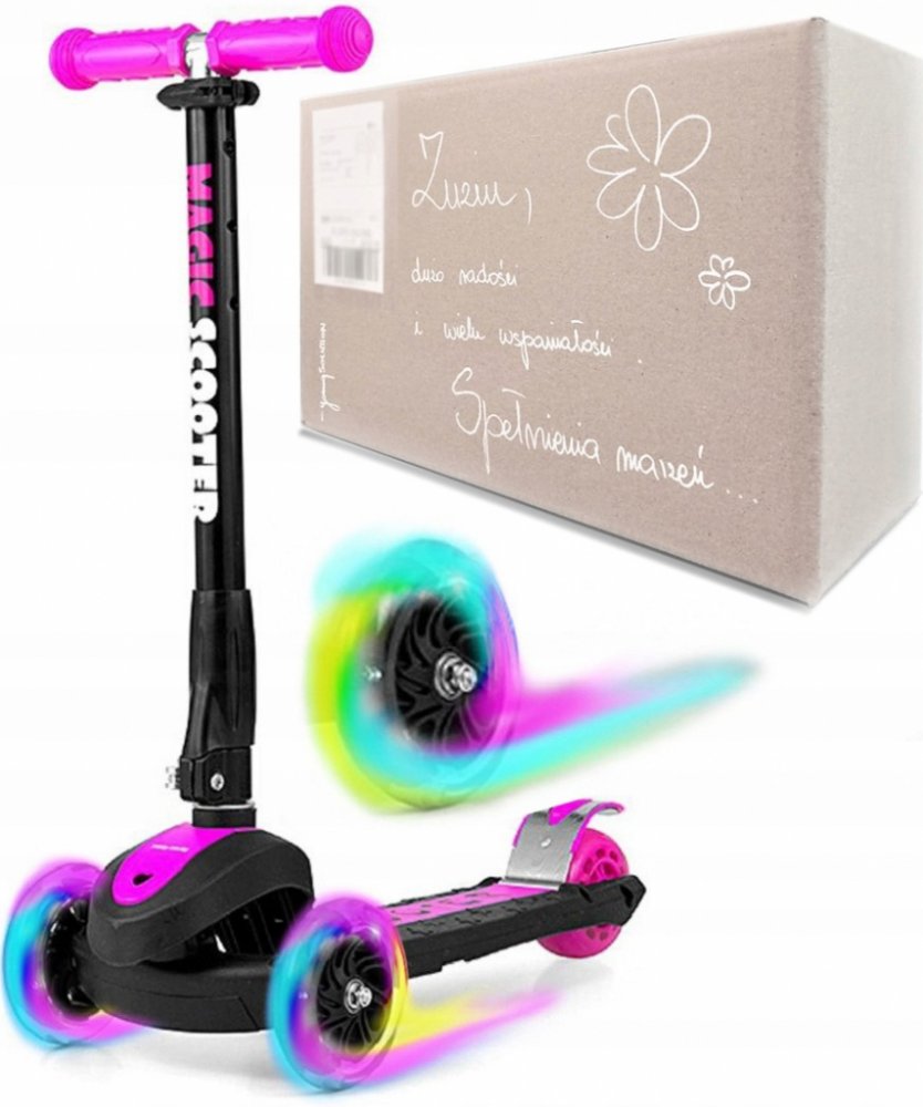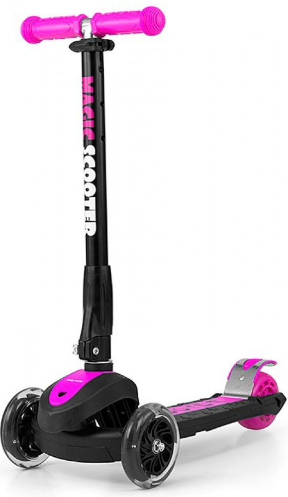Super stylová dětská koloběžka Milly Mally Magic Scooter. Je ideálním řešením pro aktivní děti, které jsou v neustálém pohybu. Magic Scooter vyrobena z kvalitních materiálů, ideální na procházky i pro skvělou zábavu. Kovová konstrukce zaručuje odolnost výrobku. Koloběžka má navíc brzdu a blatník na zadním kolečku. Řízení a kroucení pracuje na principu rovnováhy těla. Velkou výhodou koloběžky jsou 3 kola, které poskytnou stabilitu a bezpečnost. Děti potěší také, svítíci přední kola během jízdy. Magic Scooter je pohodlí a jednoduchost v moderní formě.