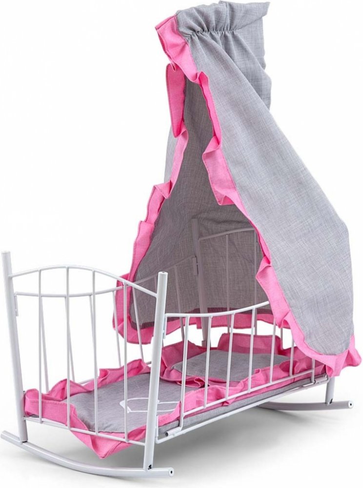 Postýlka-kolébka pro panenky Lily s baldachýnem Prestige Pink s baldachýnem má lehkou kovovou konstrukci a splňuje bezpečnostní požadavky.